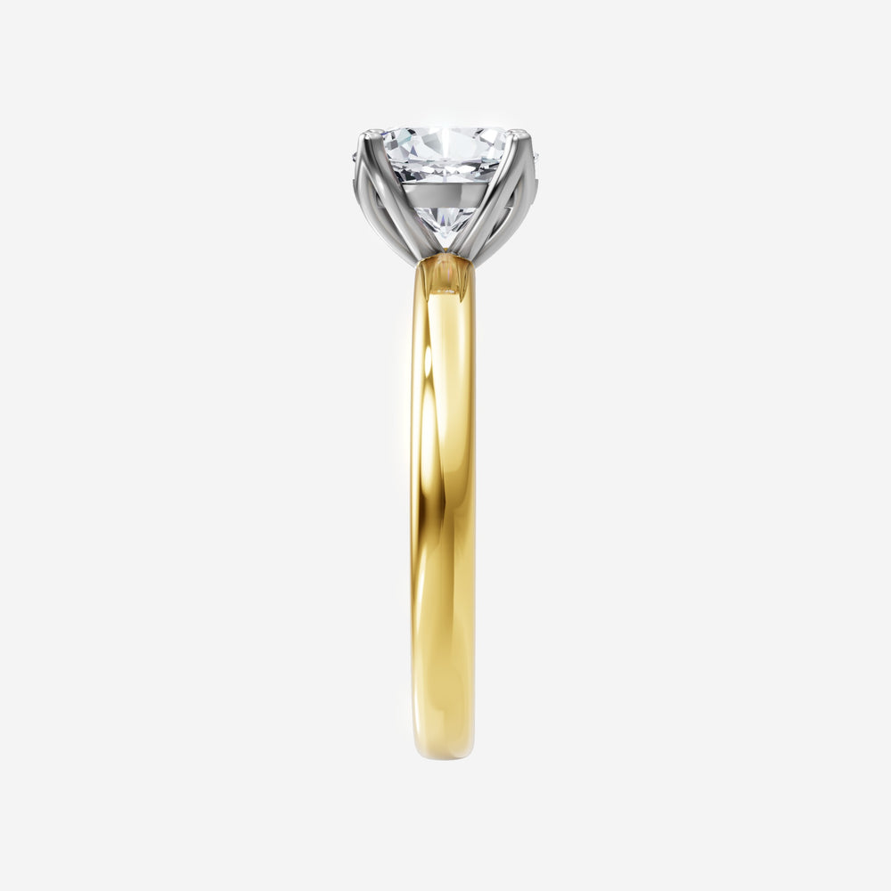 You’ve designed a ring that reflects lasting elegance and grace! Crafted from 18k Yellow White Dual Tone, this exquisite Oval lab-grown diamond is the centerpiece of this unique design. This Basic Plain Shank with a 4 Prong Flower Head head showcases the brilliance of the Oval diamond, creating a timeless look. This stunning ring makes the perfect symbol of everlasting love and devotion.