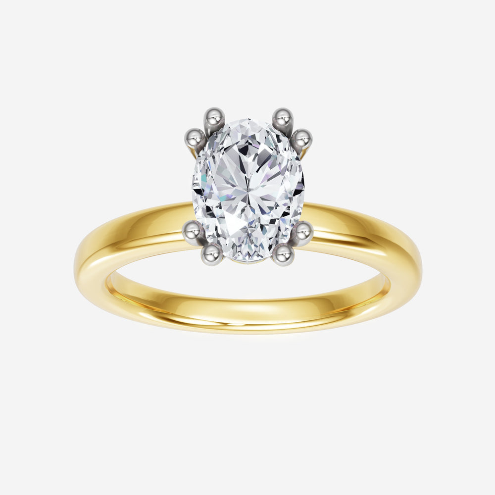You’ve designed a ring that reflects lasting elegance and grace! Crafted from 18k Yellow White Dual Tone, this exquisite Oval lab-grown diamond is the centerpiece of this unique design. This Basic Plain Shank with a 4 Prong Split Prong head showcases the brilliance of the Oval diamond, creating a timeless look. Ideal for those who seek both beauty and meaning, this ring will stand as a testament to cherished memories.