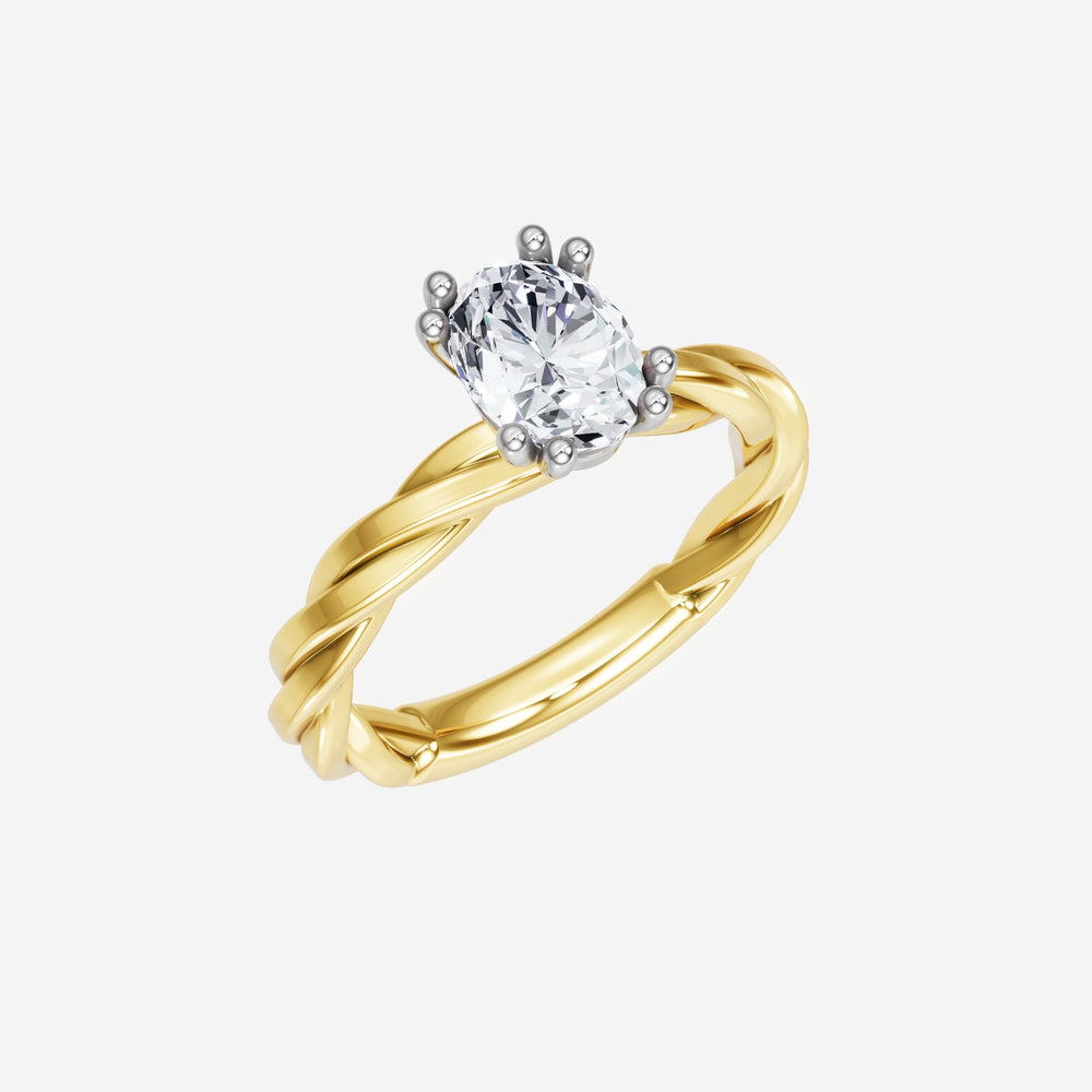 You’ve designed a ring that reflects lasting elegance and grace! Crafted from 18k Yellow White Dual Tone, this exquisite Oval lab-grown diamond is the centerpiece of this unique design. This Rope Plain Shank with a 4 Prong Split Prong head showcases the brilliance of the Oval diamond, creating a timeless look. Whether as a gift or a personal treasure, this ring will forever symbolize the most meaningful moments in life.