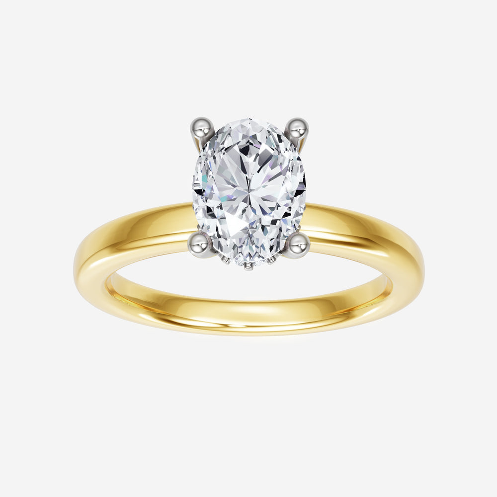 You’ve designed a ring that reflects lasting elegance and grace! Crafted from 18k Yellow White Dual Tone, this exquisite Oval lab-grown diamond is the centerpiece of this unique design. This Basic Plain Shank with a Hidden Halo head showcases the brilliance of the Oval diamond, creating a timeless look. A perfect choice to celebrate love, commitment, and everything in between.