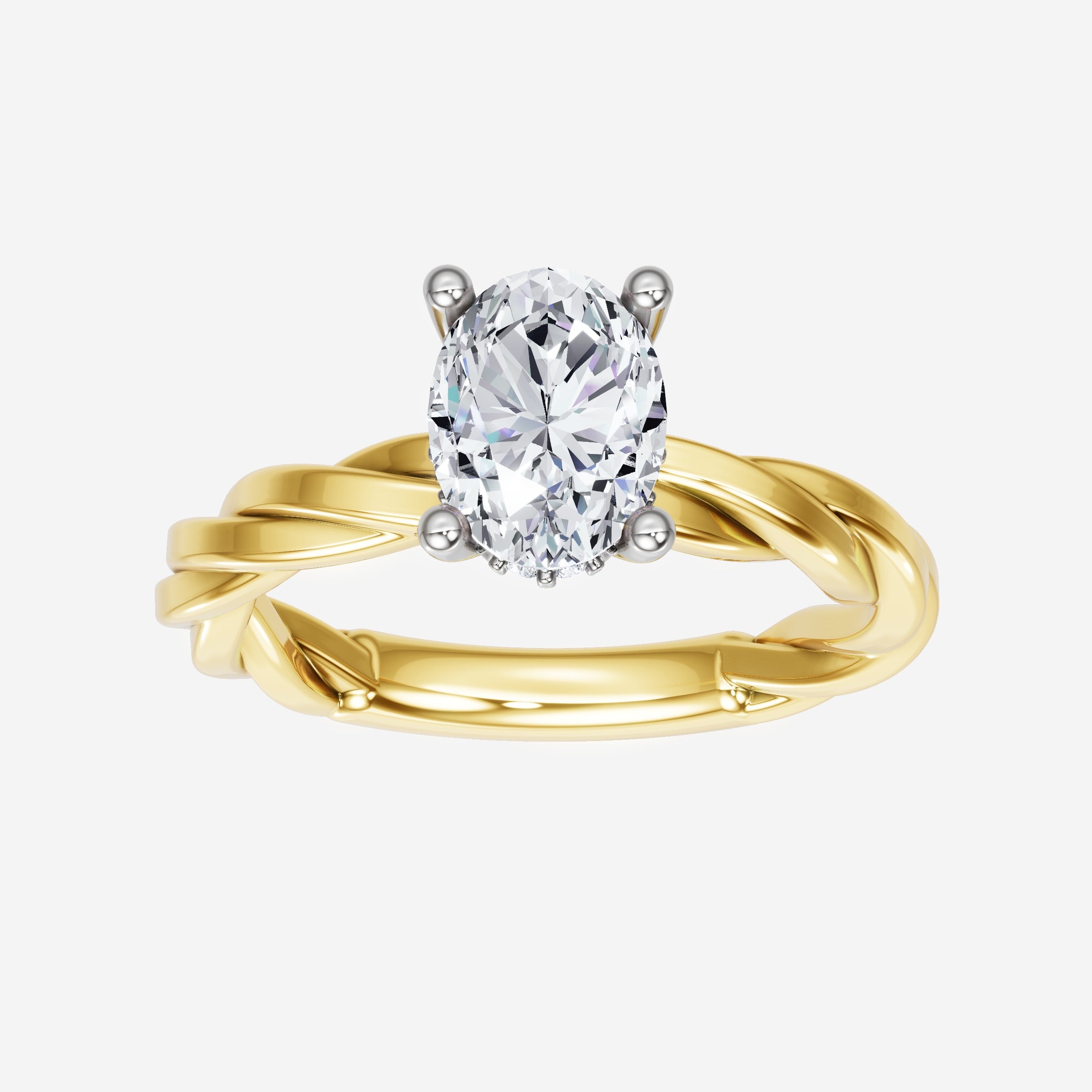 You’ve designed a ring that reflects lasting elegance and grace! Crafted from 18k Yellow White Dual Tone, this exquisite Oval lab-grown diamond is the centerpiece of this unique design. This Rope Plain Shank with a Hidden Halo head showcases the brilliance of the Oval diamond, creating a timeless look. Whether as a gift or a personal treasure, this ring will forever symbolize the most meaningful moments in life.