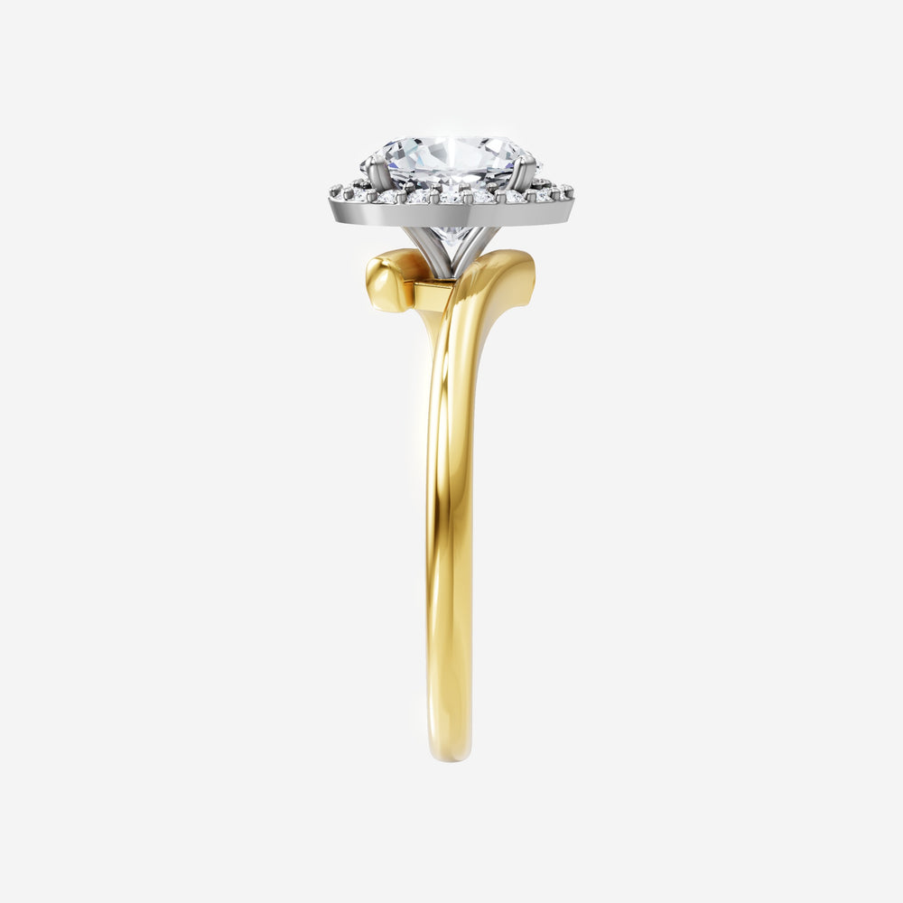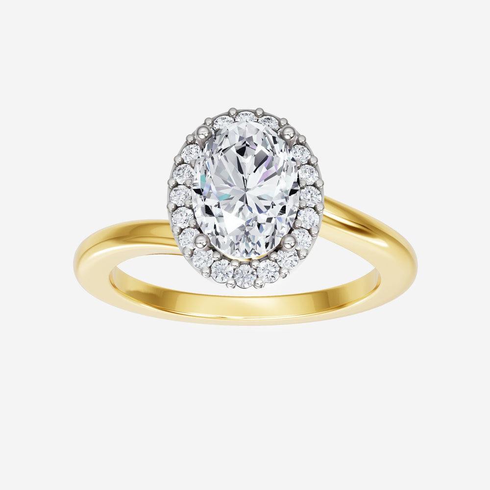 You’ve designed a ring that reflects lasting elegance and grace! Crafted from 18k Yellow White Dual Tone, this exquisite Oval lab-grown diamond is the centerpiece of this unique design. This Bypass Shank with a Single Halo head showcases the brilliance of the Oval diamond, creating a timeless look. It's a piece of elegance and beauty, perfect for marking life's most beautiful occasions.