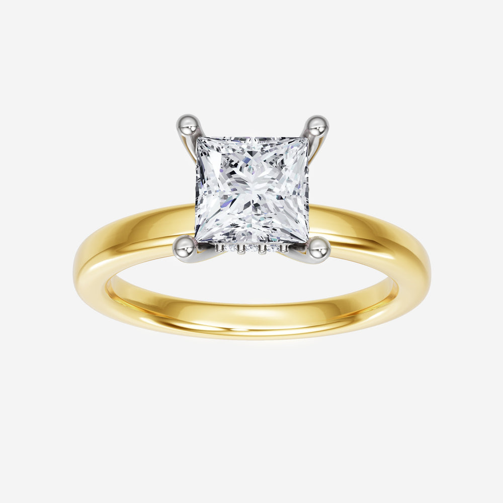 You’ve designed a ring that reflects lasting elegance and grace! Crafted from 18k Yellow White Dual Tone, this exquisite Princess lab-grown diamond is the centerpiece of this unique design. This Basic Plain Shank with a Hidden Halo head showcases the brilliance of the Princess diamond, creating a timeless look. This ring will become a cherished reminder of life's most treasured moments.