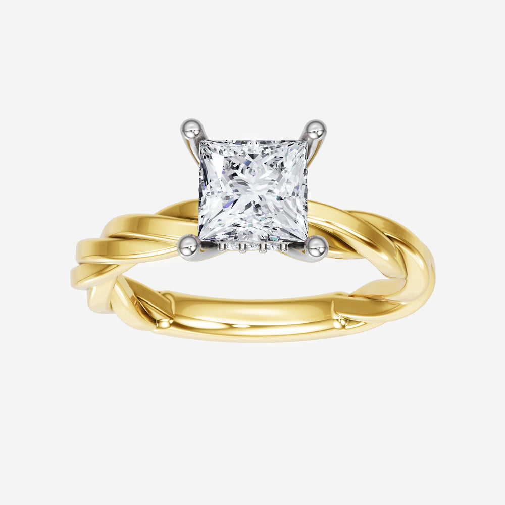 You’ve designed a ring that reflects lasting elegance and grace! Crafted from 18k Yellow White Dual Tone, this exquisite Princess lab-grown diamond is the centerpiece of this unique design. This Rope Plain Shank with a Hidden Halo head showcases the brilliance of the Princess diamond, creating a timeless look. Whether as a gift or a personal treasure, this ring will forever symbolize the most meaningful moments in life.
