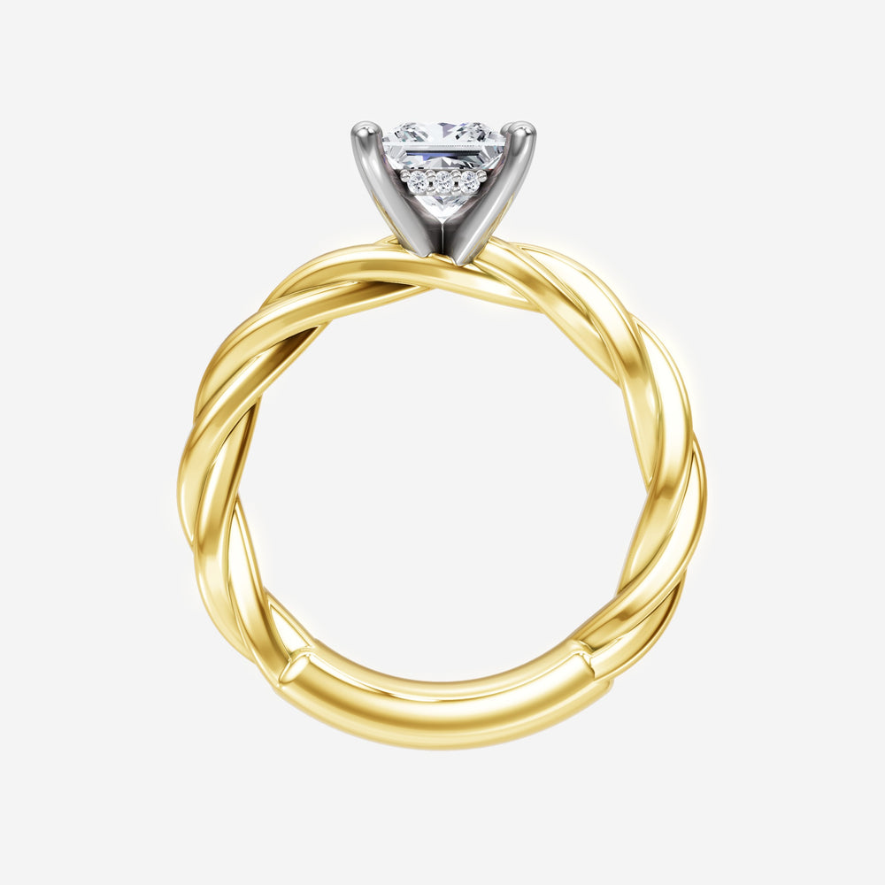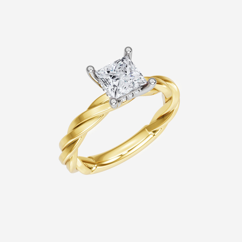 You’ve designed a ring that reflects lasting elegance and grace! Crafted from 18k Yellow White Dual Tone, this exquisite Princess lab-grown diamond is the centerpiece of this unique design. This Rope Plain Shank with a Hidden Halo head showcases the brilliance of the Princess diamond, creating a timeless look. It's a piece of elegance and beauty, perfect for marking life's most beautiful occasions.
