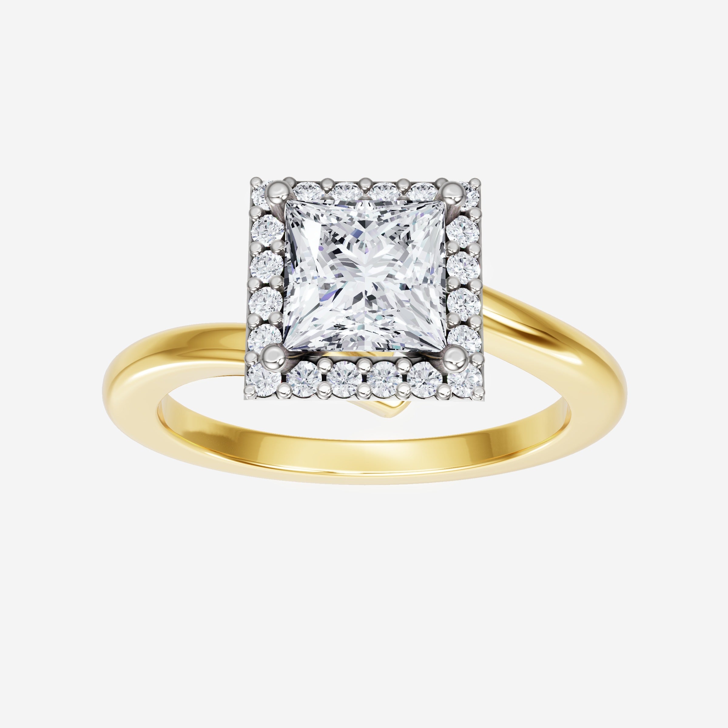 You’ve designed a ring that reflects lasting elegance and grace! Crafted from 18k Yellow White Dual Tone, this exquisite Princess lab-grown diamond is the centerpiece of this unique design. This Bypass Shank with a Single Halo head showcases the brilliance of the Princess diamond, creating a timeless look. This stunning ring makes the perfect symbol of everlasting love and devotion.