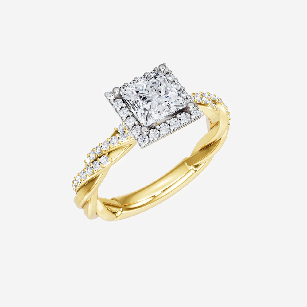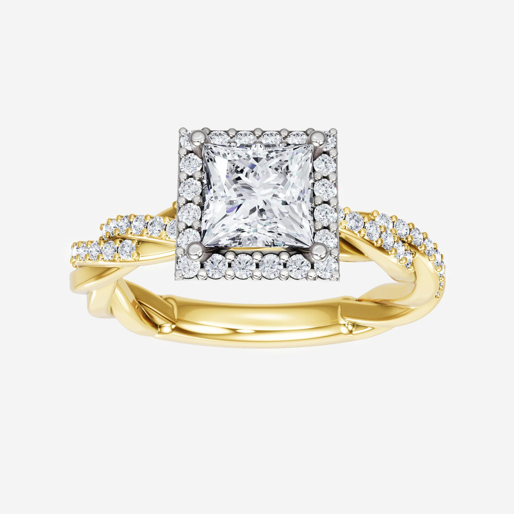 You’ve designed a ring that reflects lasting elegance and grace! Crafted from 18k Yellow White Dual Tone, this exquisite Princess lab-grown diamond is the centerpiece of this unique design. This Rope Diamond Shank with a Single Halo head showcases the brilliance of the Princess diamond, creating a timeless look. This ring will become a cherished reminder of life's most treasured moments.