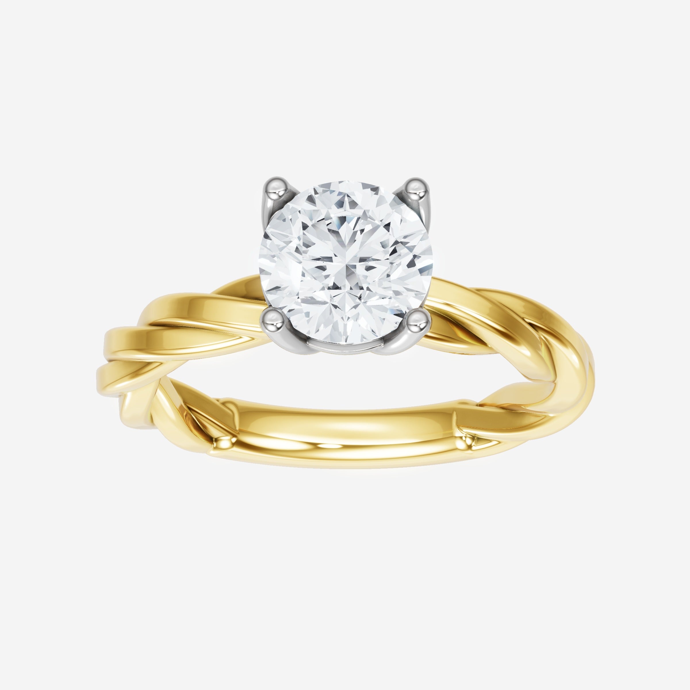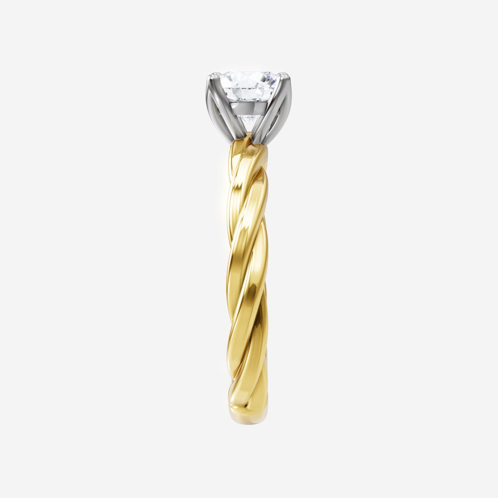You’ve designed a ring that reflects lasting elegance and grace! Crafted from 18k Yellow White Dual Tone, this exquisite Round lab-grown diamond is the centerpiece of this unique design. This Rope Plain Shank with a 4 Prong Flower Head head showcases the brilliance of the Round diamond, creating a timeless look. It's a piece of elegance and beauty, perfect for marking life's most beautiful occasions.