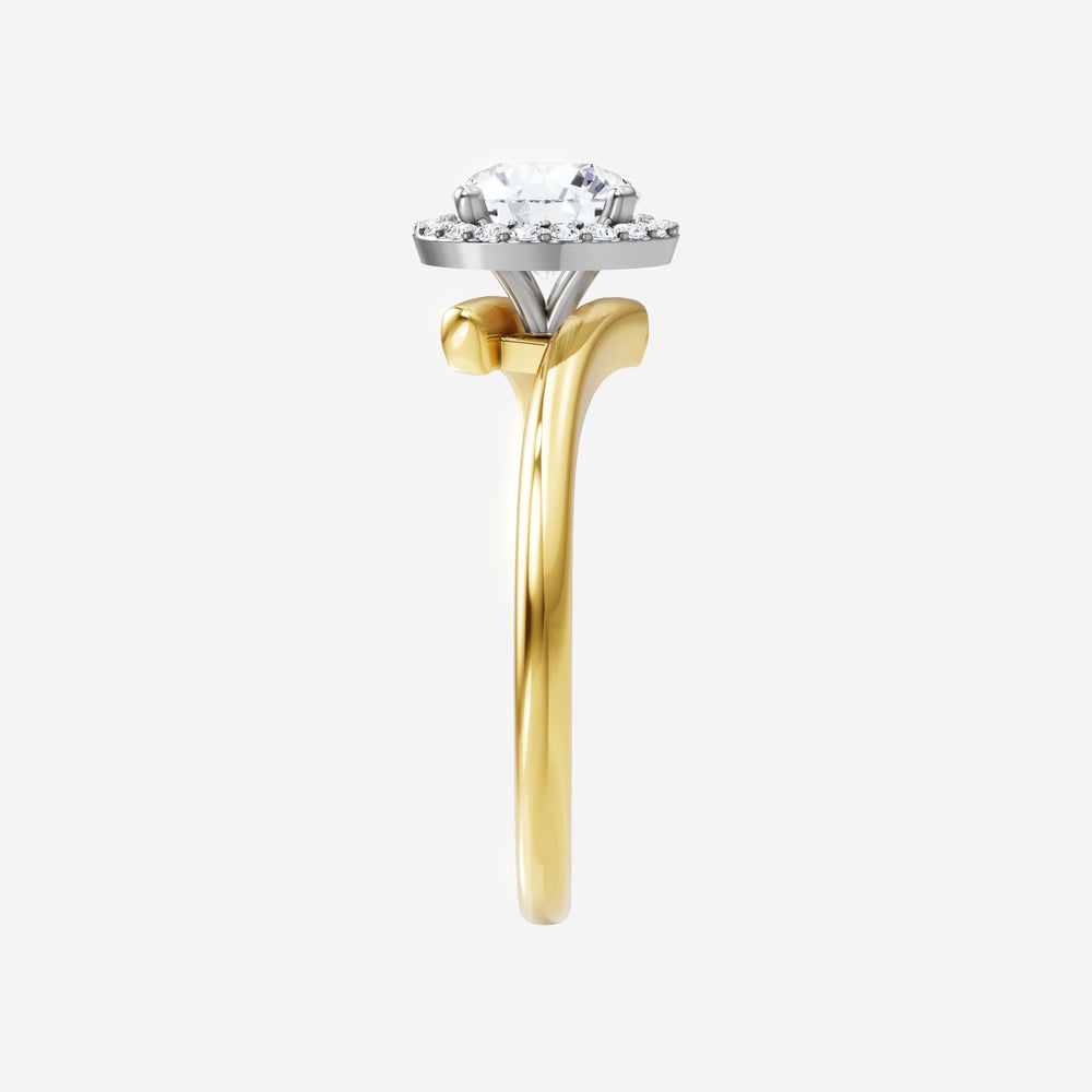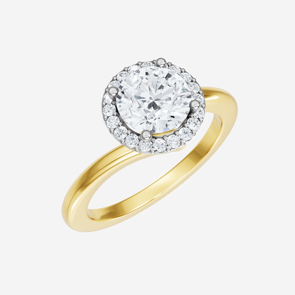 You’ve designed a ring that reflects lasting elegance and grace! Crafted from 18k Yellow White Dual Tone, this exquisite Round lab-grown diamond is the centerpiece of this unique design. This Bypass Shank with a Single Halo head showcases the brilliance of the Round diamond, creating a timeless look. This elegant piece is the perfect symbol of love, strength, and timeless beauty.