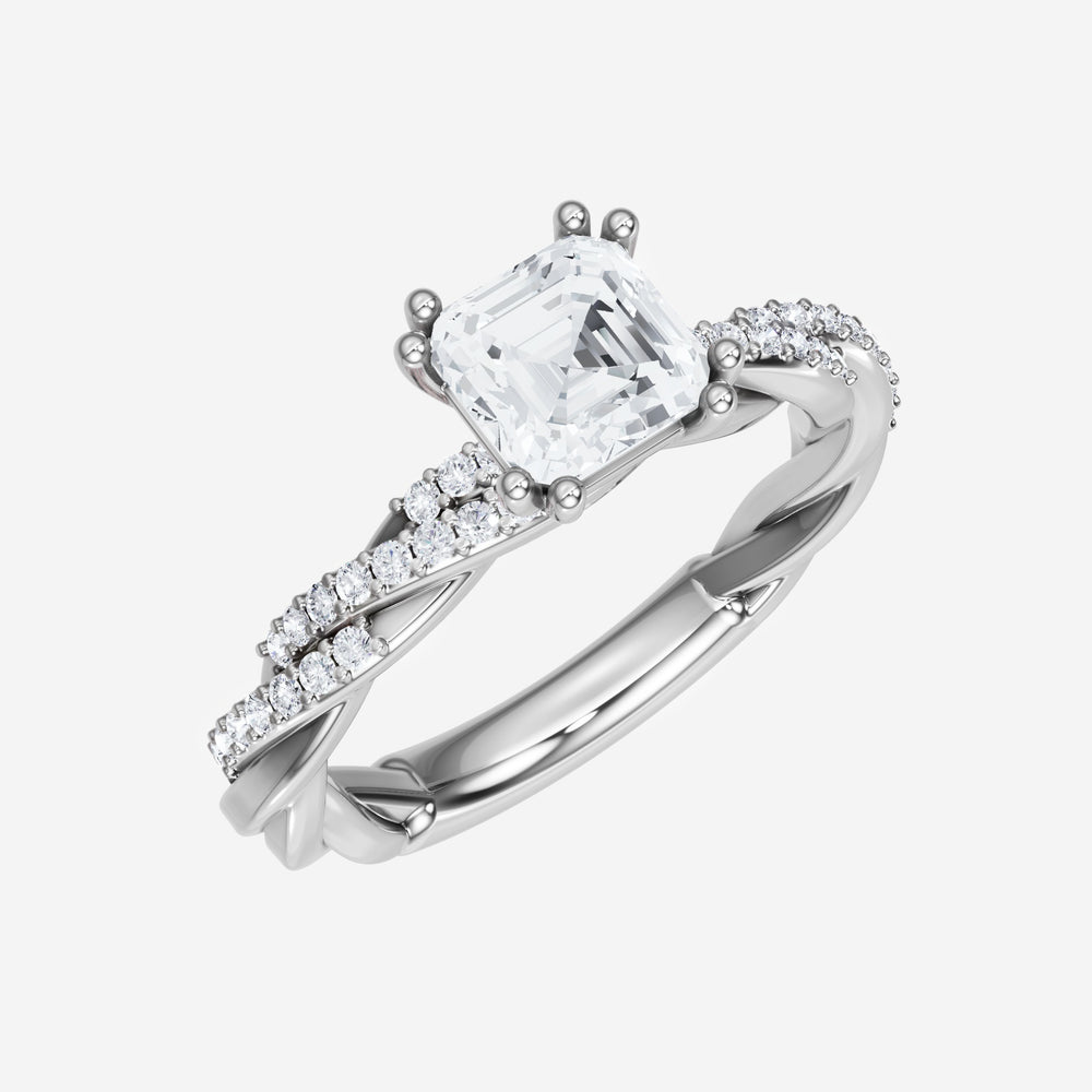 You’ve designed a ring that reflects lasting elegance and grace! Crafted from 950 Platinum, this exquisite Asscher lab-grown diamond is the centerpiece of this unique design. This Rope Diamond Shank with a 4 Prong Split Prong head showcases the brilliance of the Asscher diamond, creating a timeless look. Ideal for those who seek both beauty and meaning, this ring will stand as a testament to cherished memories.