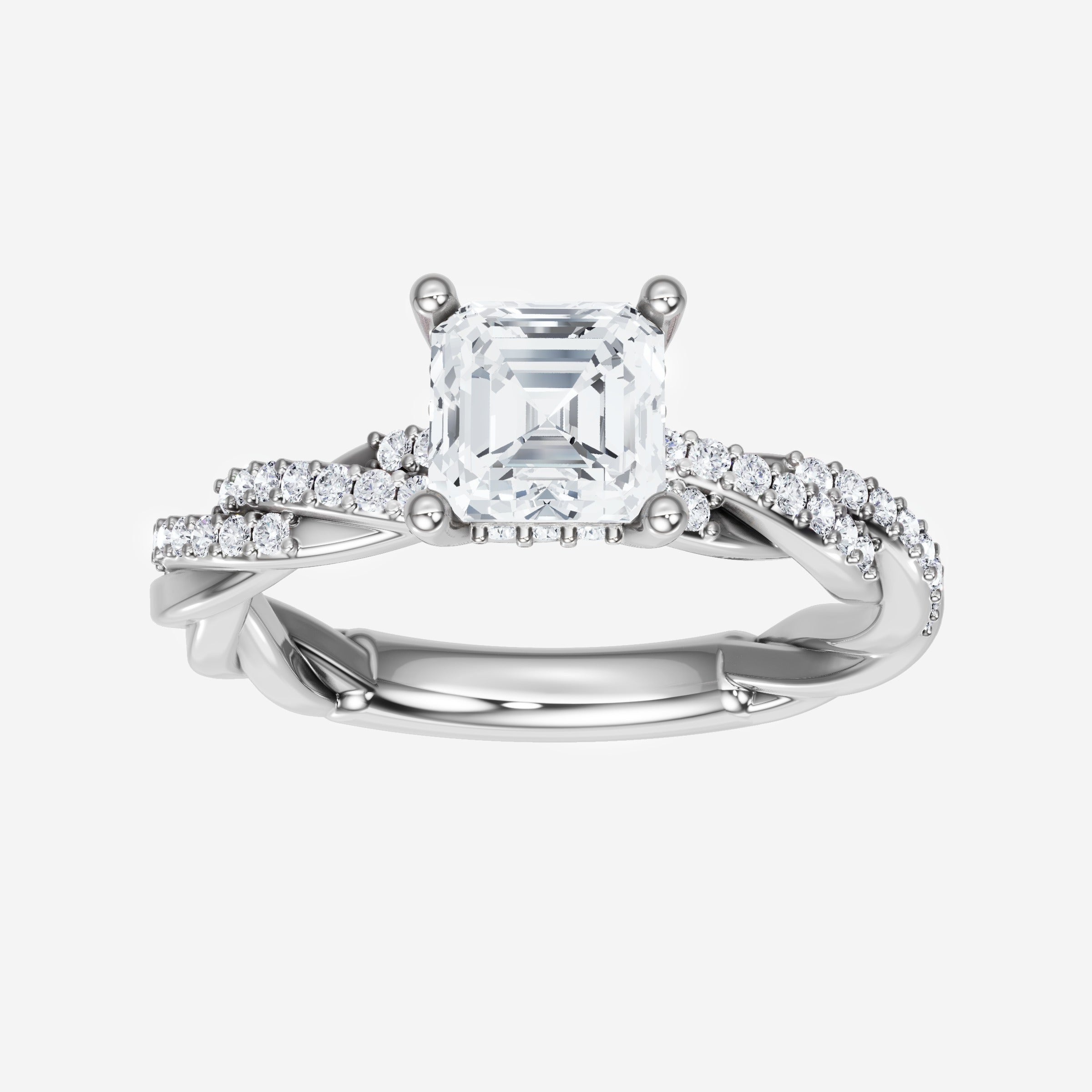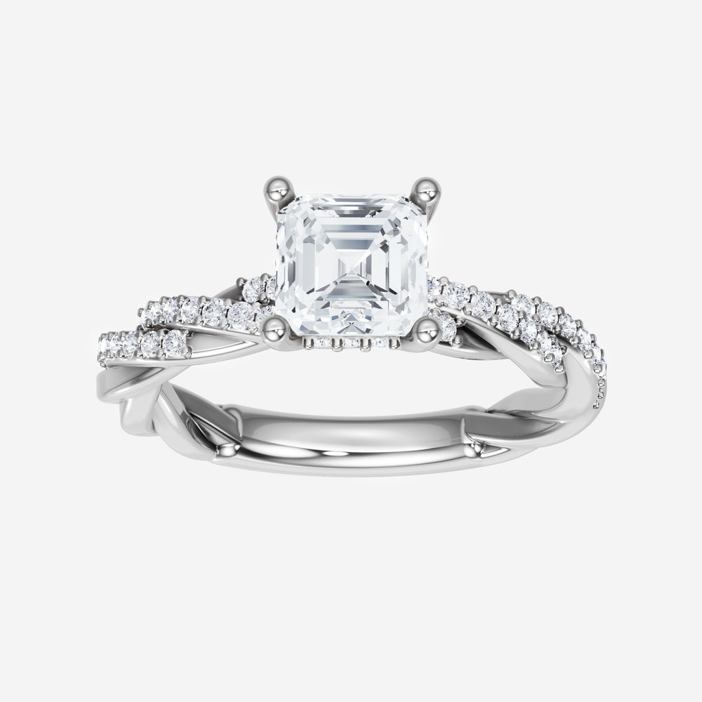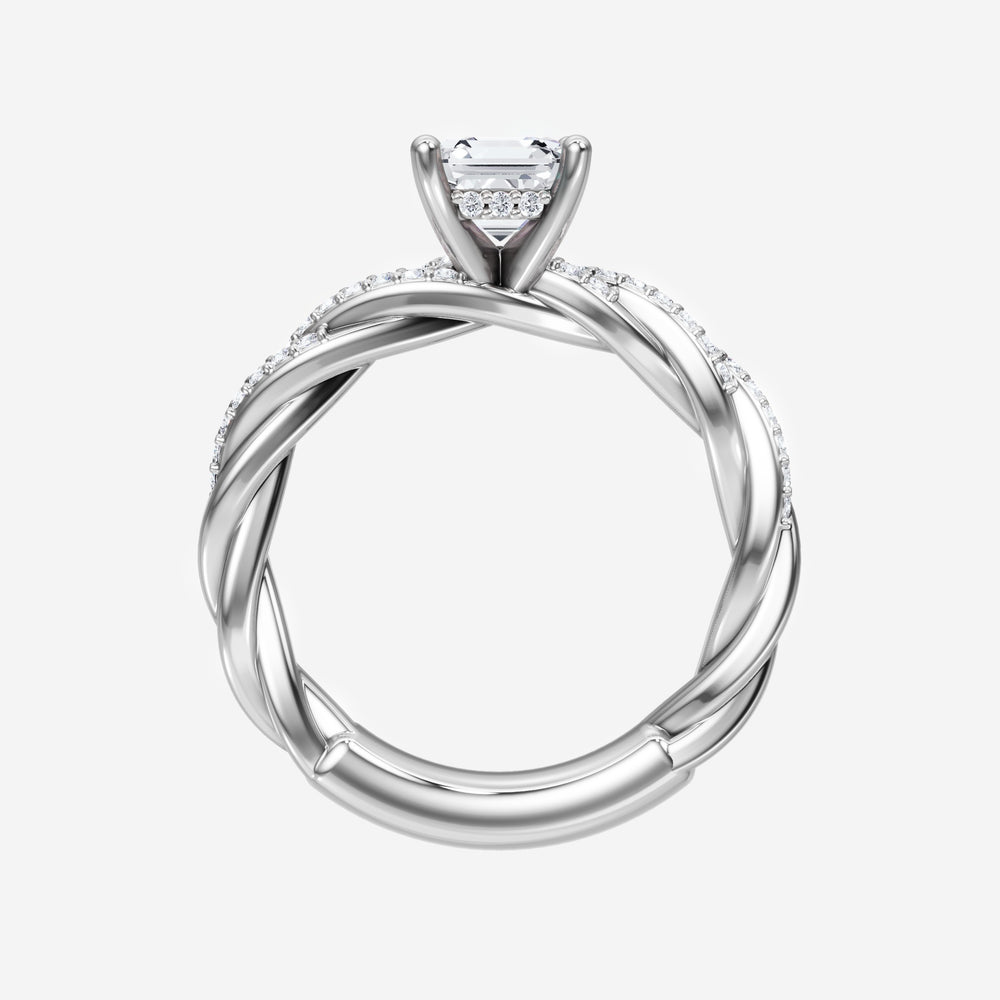 You’ve designed a ring that reflects lasting elegance and grace! Crafted from 950 Platinum, this exquisite Asscher lab-grown diamond is the centerpiece of this unique design. This Rope Diamond Shank with a Hidden Halo head showcases the brilliance of the Asscher diamond, creating a timeless look. This elegant piece is the perfect symbol of love, strength, and timeless beauty.