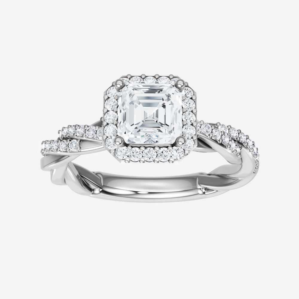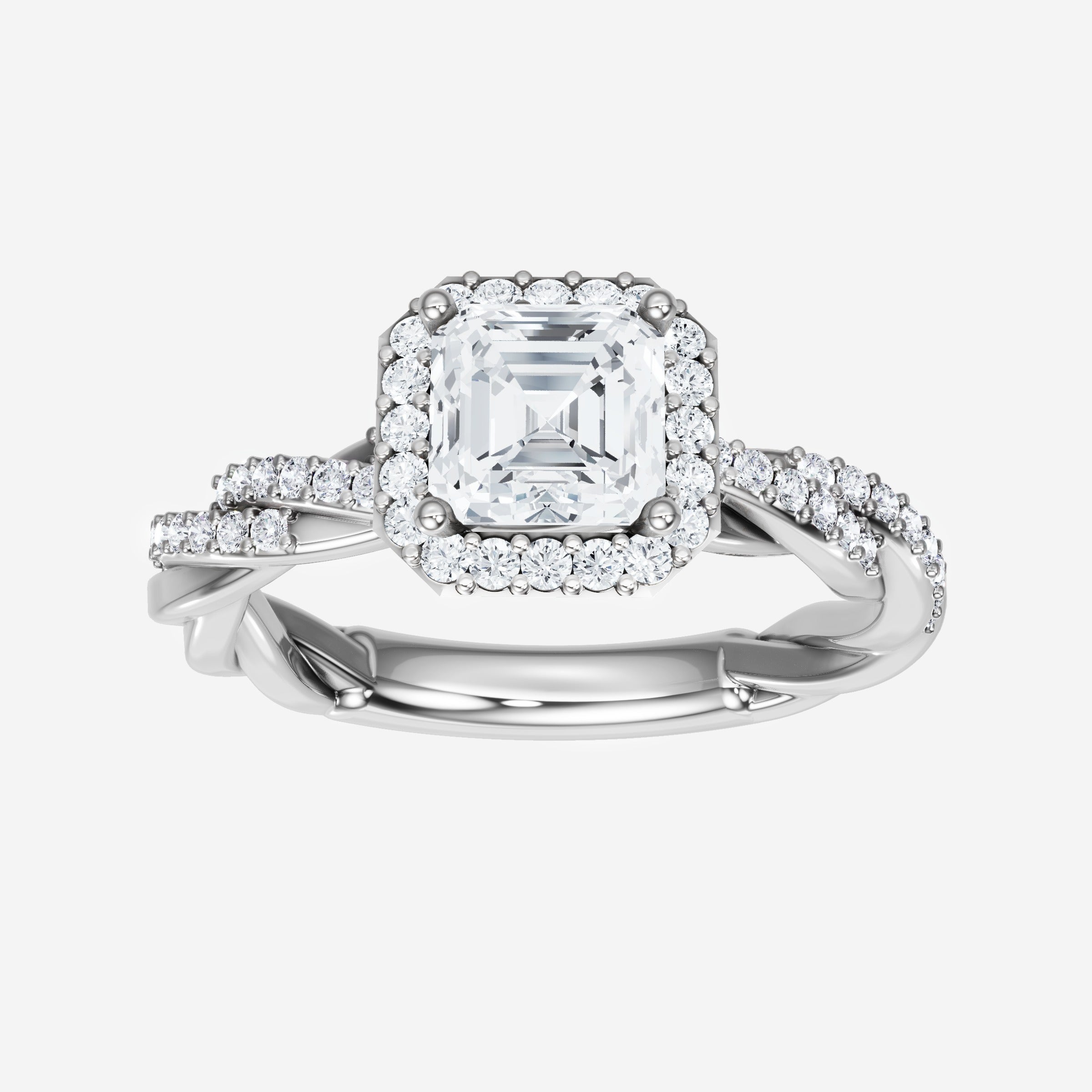 You’ve designed a ring that reflects lasting elegance and grace! Crafted from 950 Platinum, this exquisite Asscher lab-grown diamond is the centerpiece of this unique design. This Rope Diamond Shank with a Single Halo head showcases the brilliance of the Asscher diamond, creating a timeless look. With this ring, celebrate every moment of joy, success, and love.