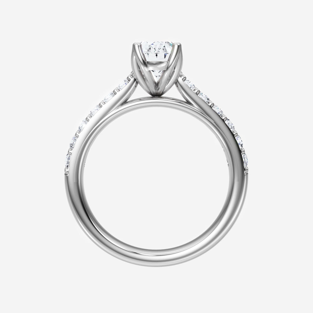 You’ve designed a ring that reflects lasting elegance and grace! Crafted from 950 Platinum, this exquisite Oval lab-grown diamond is the centerpiece of this unique design. This Cathedral Diamond Shank with a 4 Prong Flower Head head showcases the brilliance of the Oval diamond, creating a timeless look. Whether as a gift or a personal treasure, this ring will forever symbolize the most meaningful moments in life.