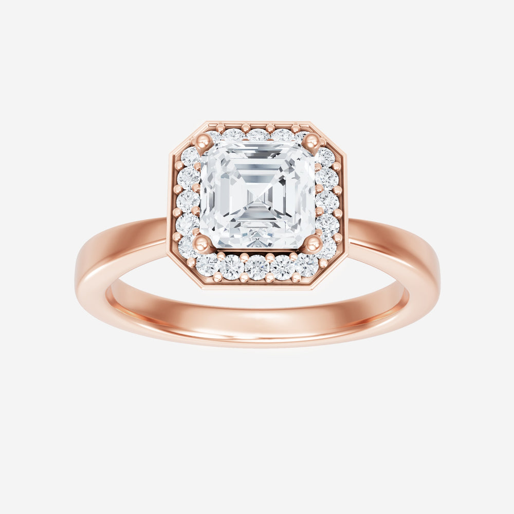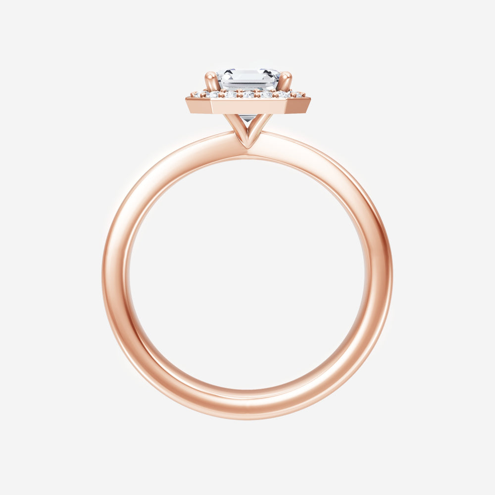 You’ve designed a ring that reflects lasting elegance and grace! Crafted from 14k Rose Gold, this exquisite Asscher lab-grown diamond is the centerpiece of this unique design. This Bow Shank (Reverse Tapered) with a Pave Halo head showcases the brilliance of the Asscher diamond, creating a timeless look. Whether as a gift or a personal treasure, this ring will forever symbolize the most meaningful moments in life.