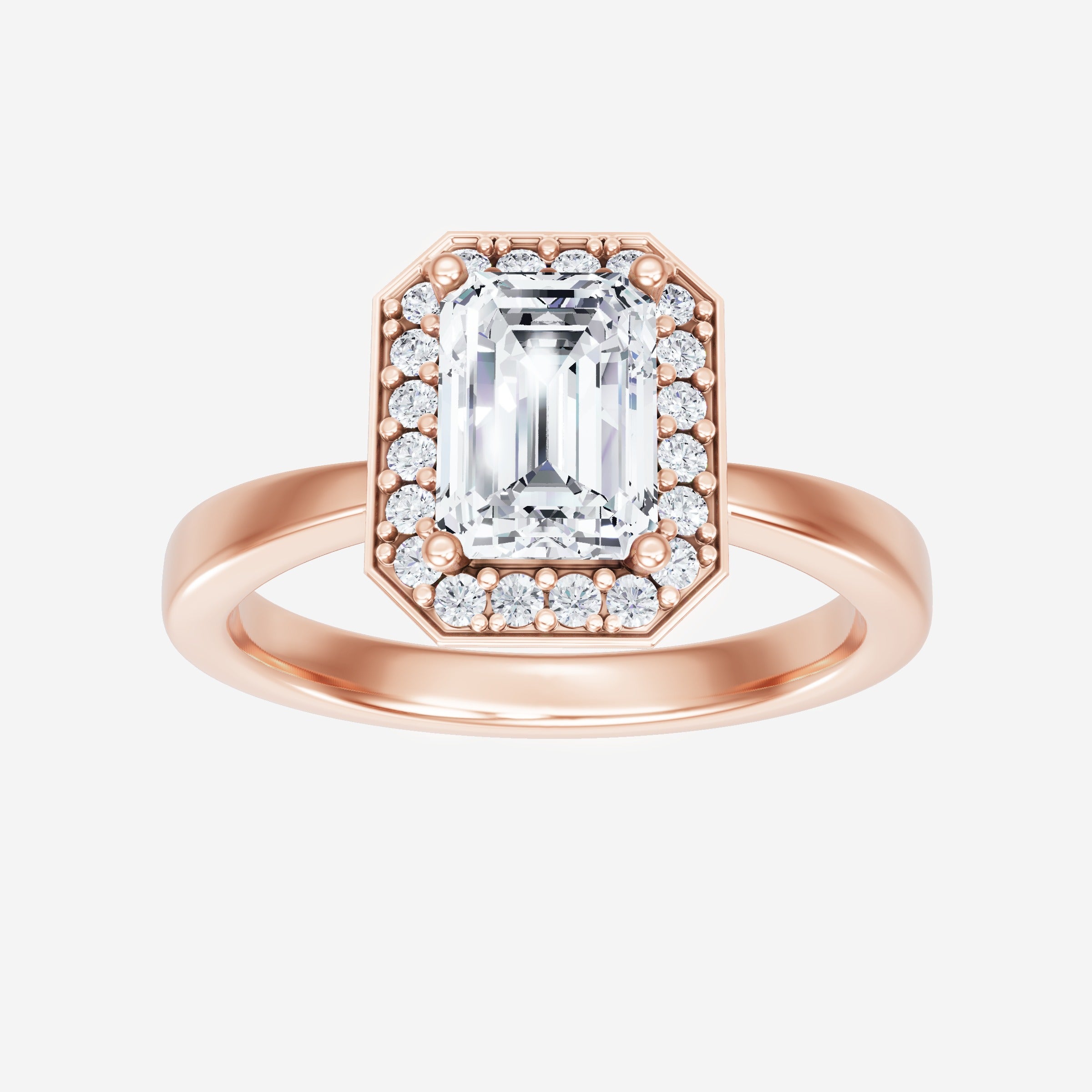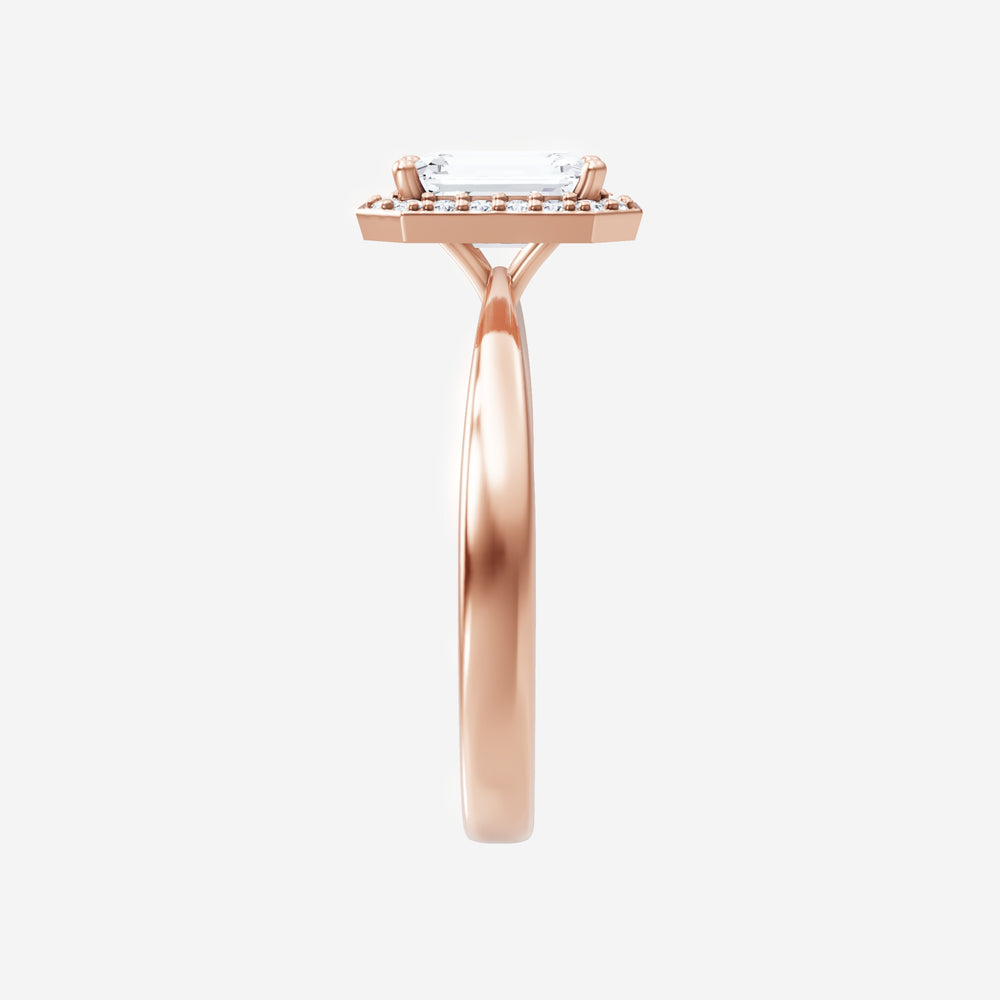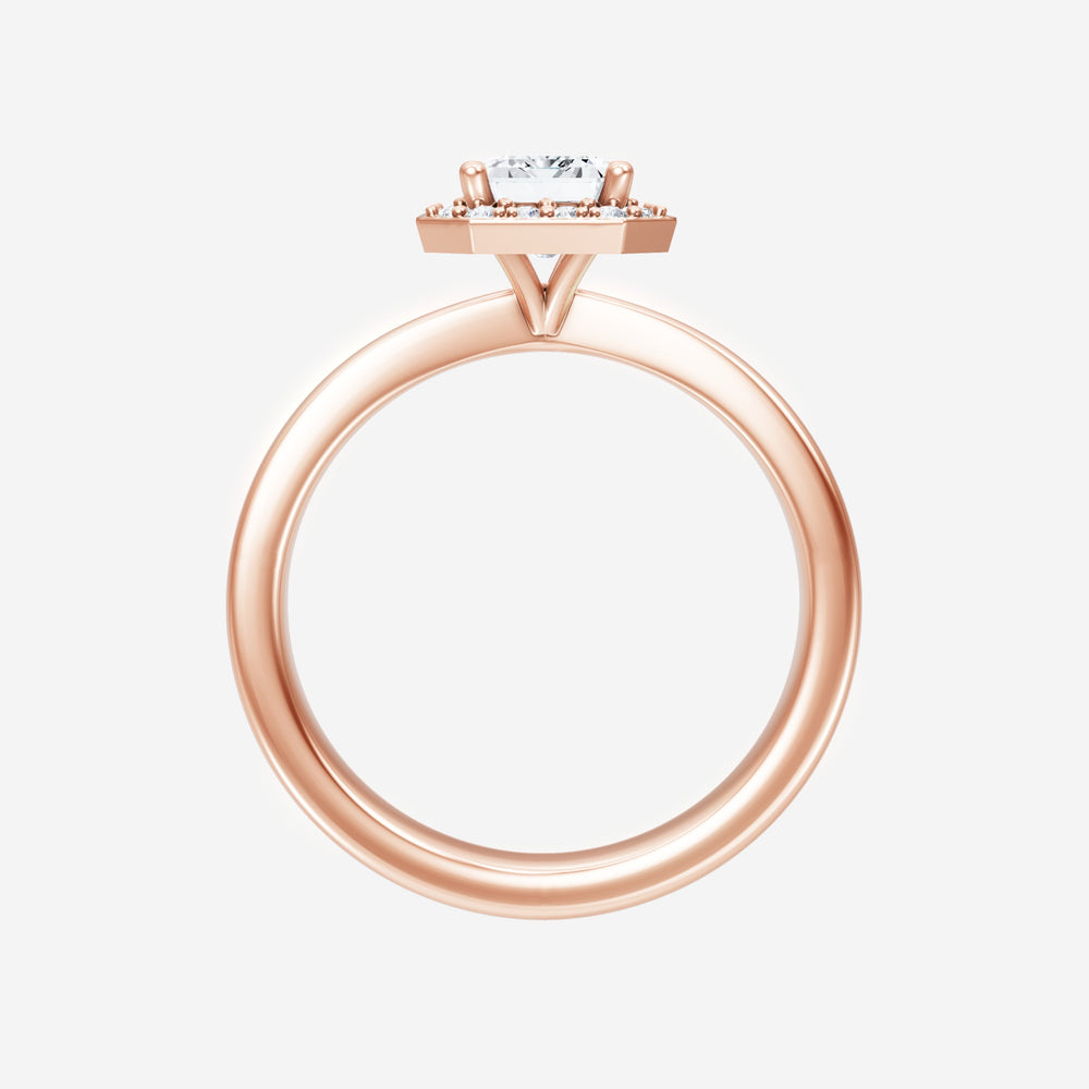 You’ve designed a ring that reflects lasting elegance and grace! Crafted from 14k Rose Gold, this exquisite Emerald lab-grown diamond is the centerpiece of this unique design. This Bow Shank (Reverse Tapered) with a Pave Halo head showcases the brilliance of the Emerald diamond, creating a timeless look. Whether as a gift or a personal treasure, this ring will forever symbolize the most meaningful moments in life.