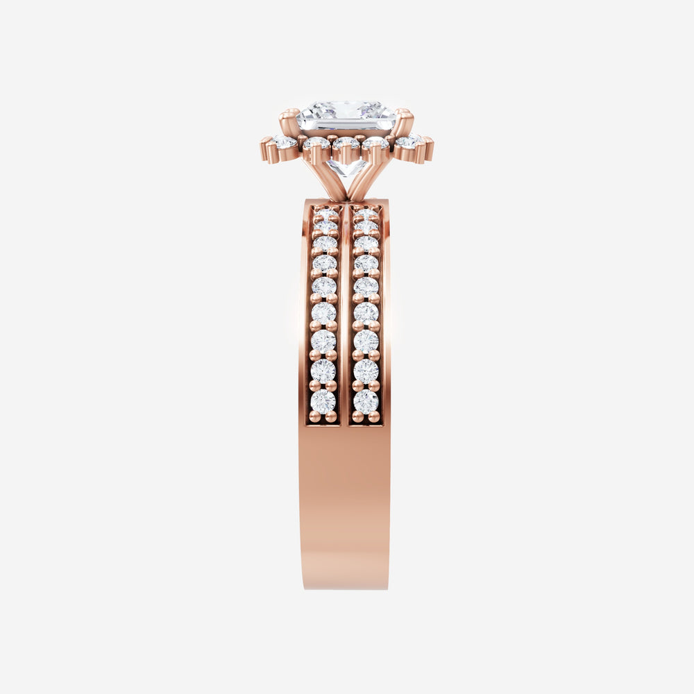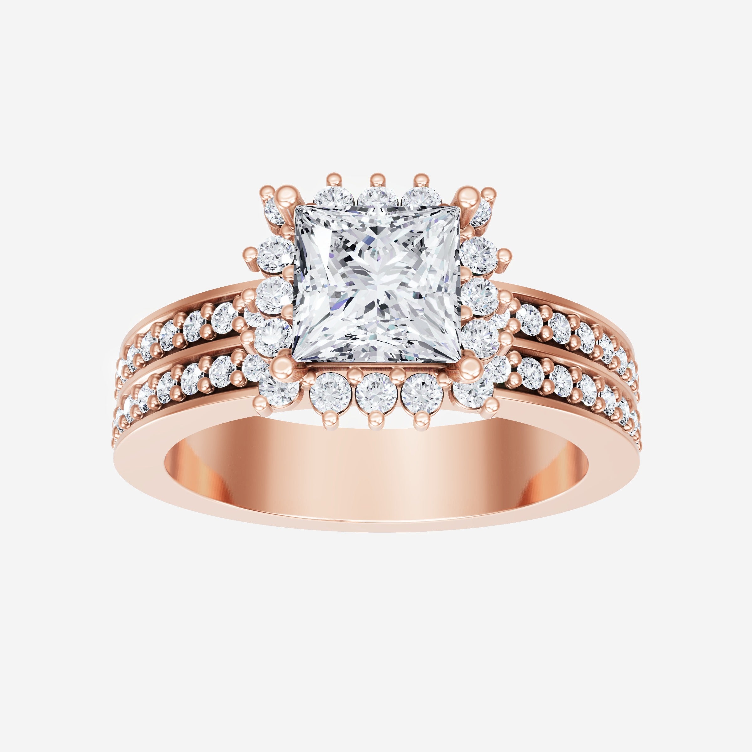 You’ve designed a ring that reflects lasting elegance and grace! Crafted from 14k Rose Gold, this exquisite Princess lab-grown diamond is the centerpiece of this unique design. This Double Row Pave with a Diana Halo head showcases the brilliance of the Princess diamond, creating a timeless look. With this ring, celebrate every moment of joy, success, and love.