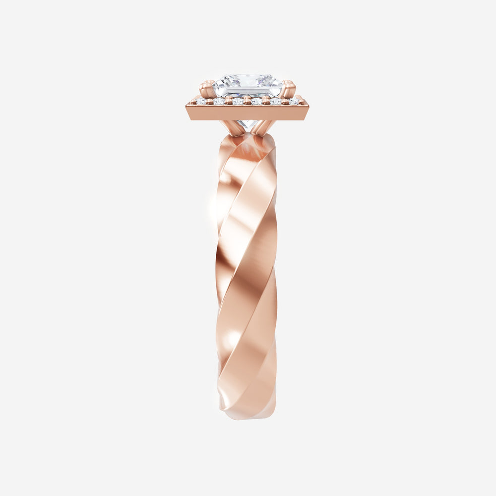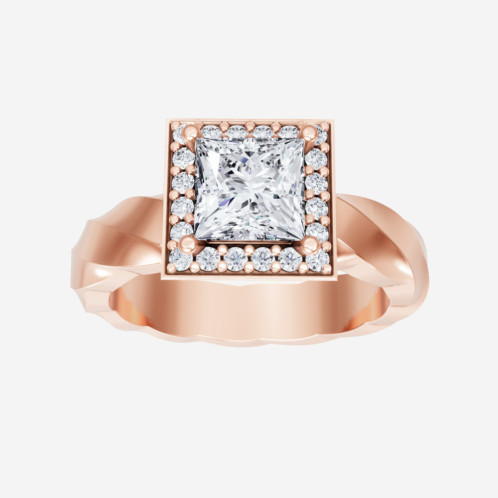 You’ve designed a ring that reflects lasting elegance and grace! Crafted from 14k Rose Gold, this exquisite Princess lab-grown diamond is the centerpiece of this unique design. This Twisted Shank with a Pave Halo head showcases the brilliance of the Princess diamond, creating a timeless look. This stunning ring makes the perfect symbol of everlasting love and devotion.