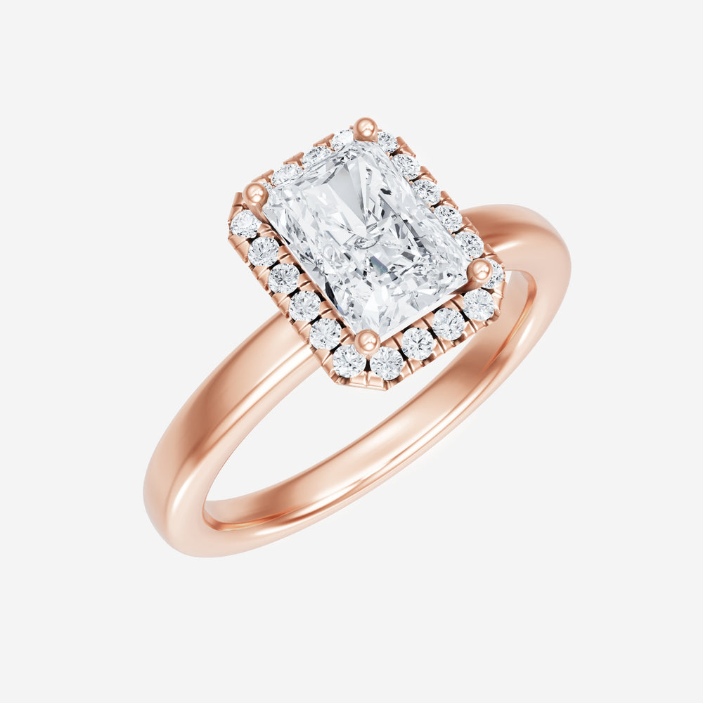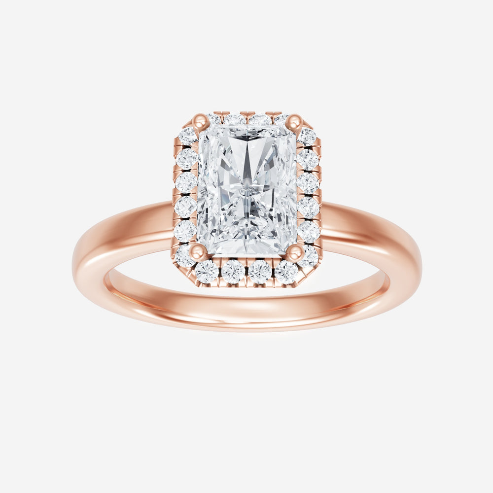 You’ve designed a ring that reflects lasting elegance and grace! Crafted from 14k Rose Gold, this exquisite Radiant lab-grown diamond is the centerpiece of this unique design. This Basic Plain Shank with a Micro Halo head showcases the brilliance of the Radiant diamond, creating a timeless look. Ideal for those who seek both beauty and meaning, this ring will stand as a testament to cherished memories.