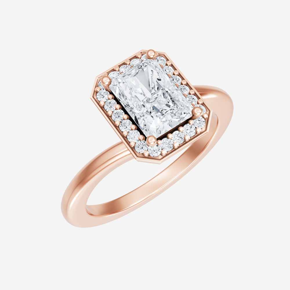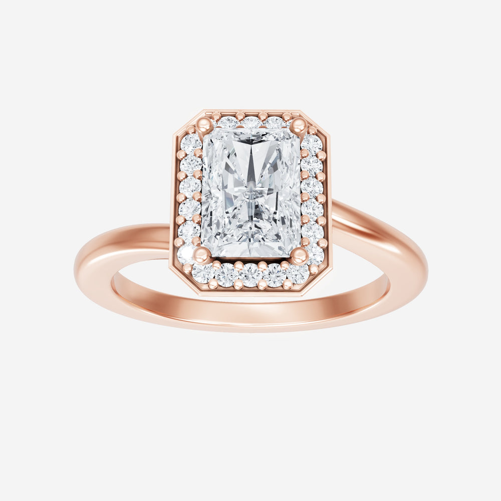 You’ve designed a ring that reflects lasting elegance and grace! Crafted from 14k Rose Gold, this exquisite Radiant lab-grown diamond is the centerpiece of this unique design. This Bypass Shank with a Pave Halo head showcases the brilliance of the Radiant diamond, creating a timeless look. This elegant piece is the perfect symbol of love, strength, and timeless beauty.