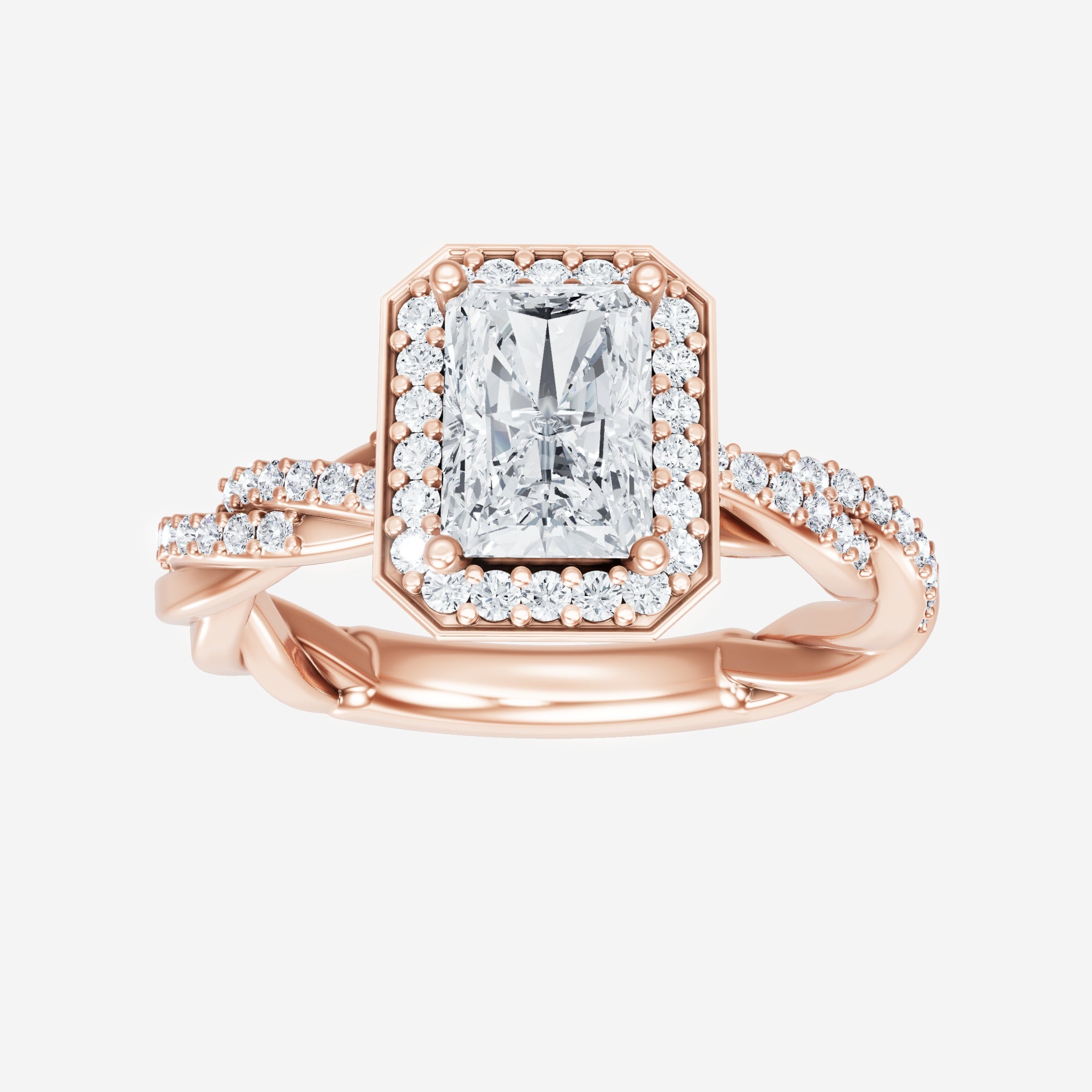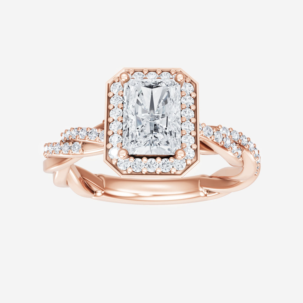 You’ve designed a ring that reflects lasting elegance and grace! Crafted from 14k Rose Gold, this exquisite Radiant lab-grown diamond is the centerpiece of this unique design. This Rope Diamond Shank with a Pave Halo head showcases the brilliance of the Radiant diamond, creating a timeless look. Whether as a gift or a personal treasure, this ring will forever symbolize the most meaningful moments in life.