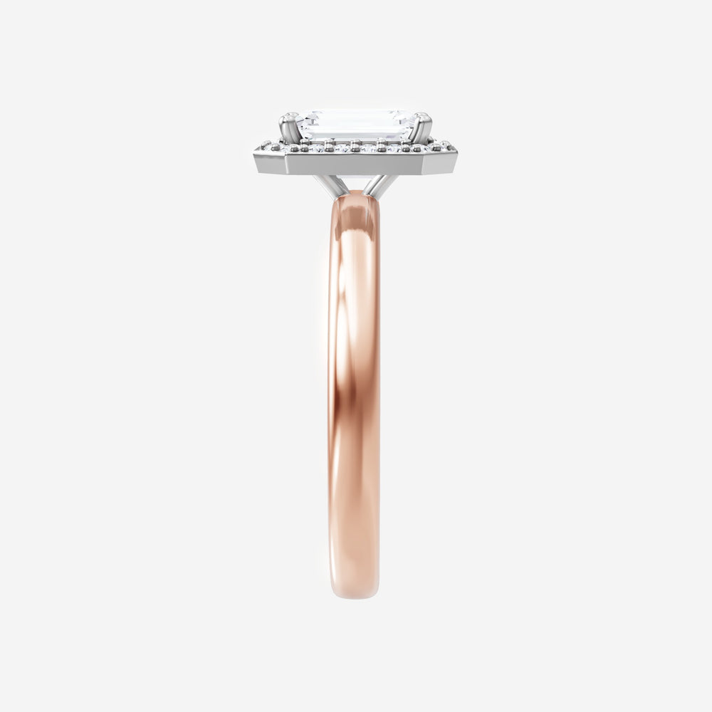 You’ve designed a ring that reflects lasting elegance and grace! Crafted from 14k Rose White Dual Tone, this exquisite Emerald lab-grown diamond is the centerpiece of this unique design. This Basic Plain Shank with a Pave Halo head showcases the brilliance of the Emerald diamond, creating a timeless look. A perfect choice to celebrate love, commitment, and everything in between.