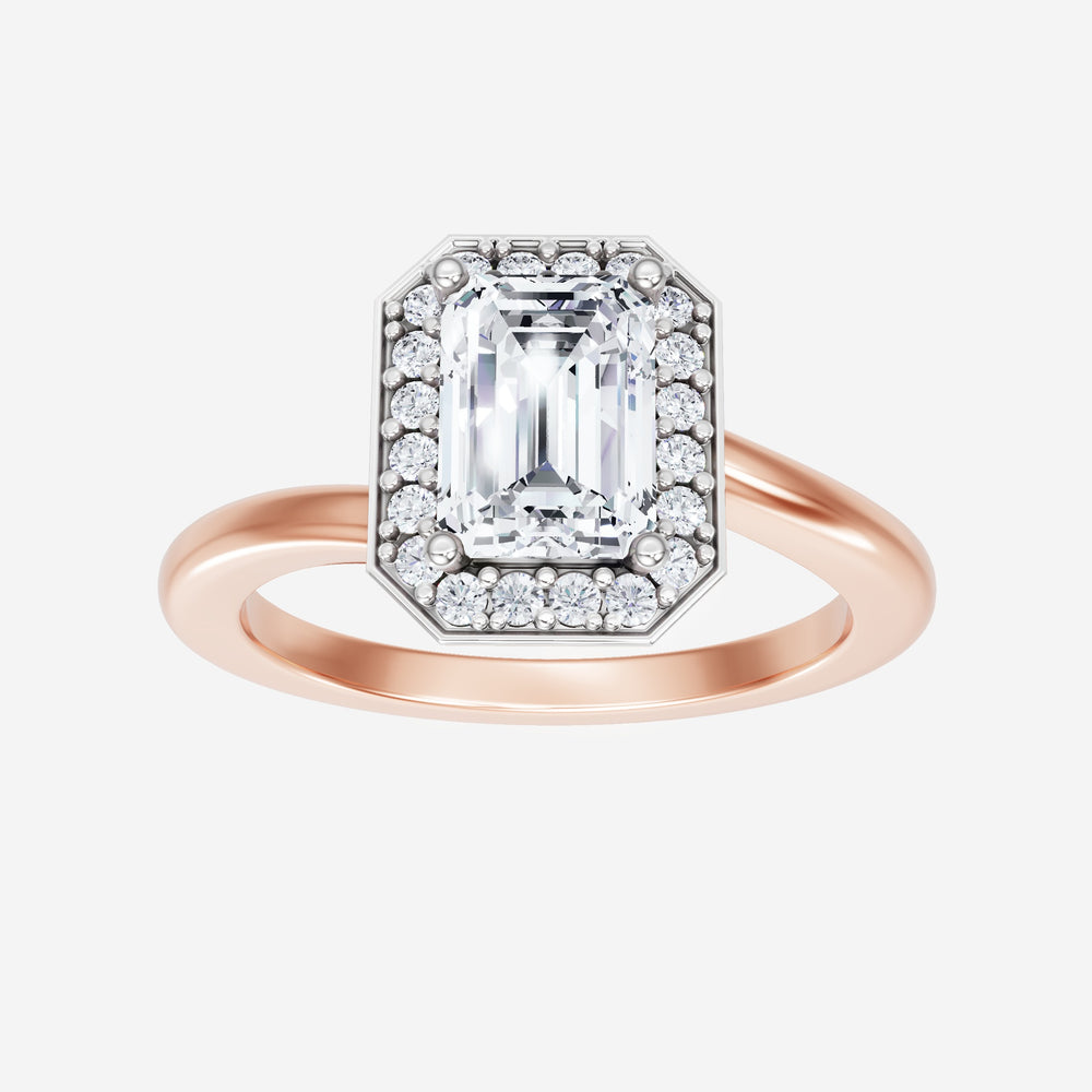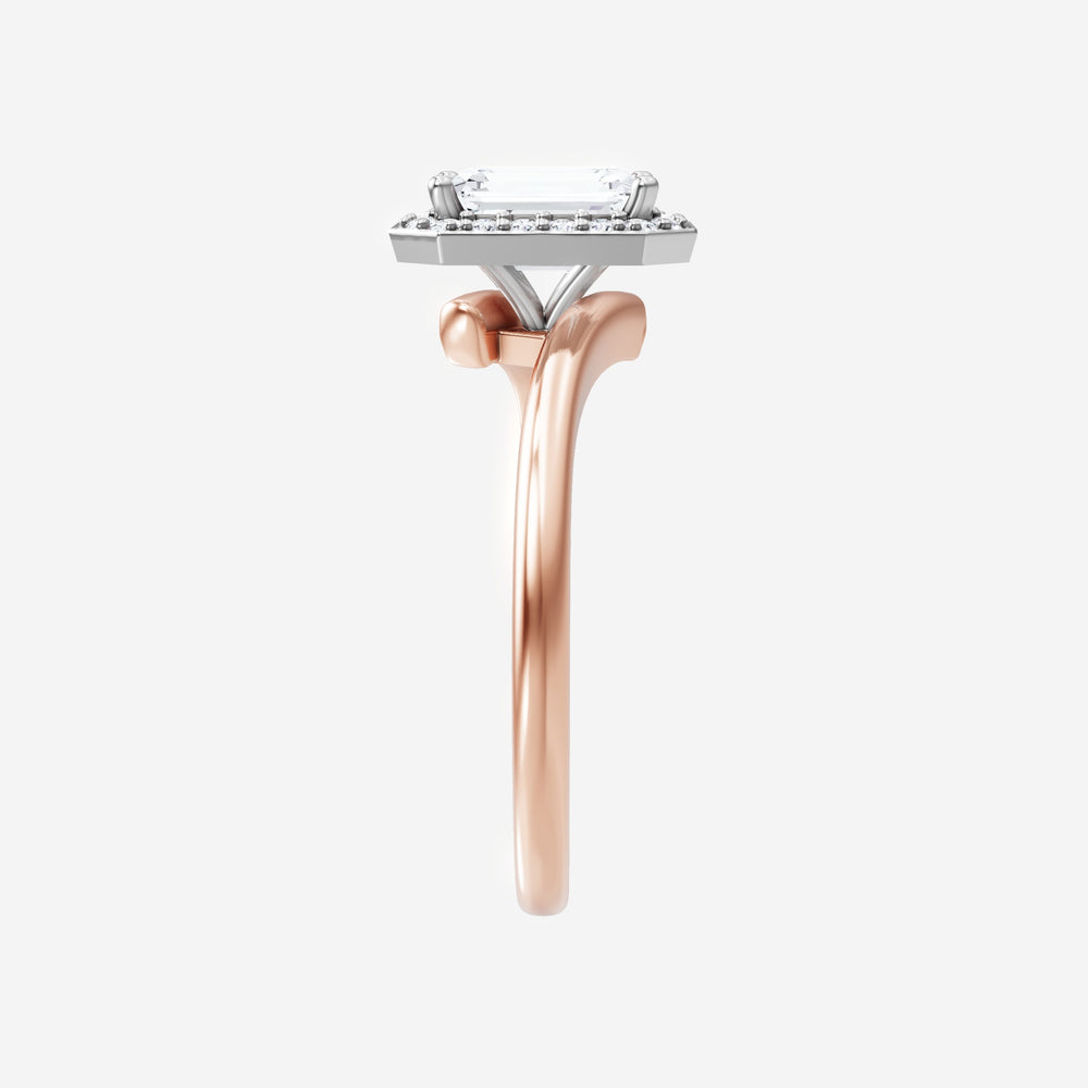 You’ve designed a ring that reflects lasting elegance and grace! Crafted from 14k Rose White Dual Tone, this exquisite Emerald lab-grown diamond is the centerpiece of this unique design. This Bypass Shank with a Pave Halo head showcases the brilliance of the Emerald diamond, creating a timeless look. Whether as a gift or a personal treasure, this ring will forever symbolize the most meaningful moments in life.