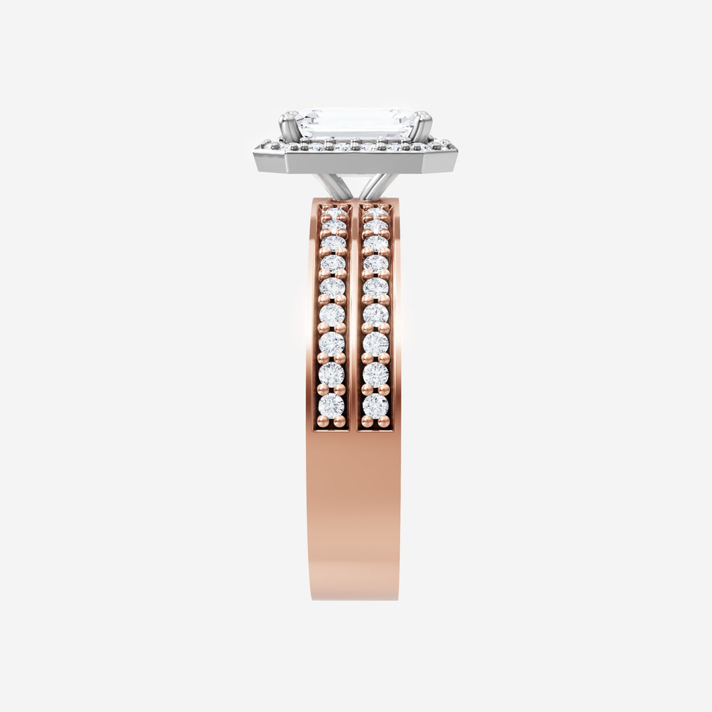 You’ve designed a ring that reflects lasting elegance and grace! Crafted from 14k Rose White Dual Tone, this exquisite Emerald lab-grown diamond is the centerpiece of this unique design. This Double Row Pave with a Pave Halo head showcases the brilliance of the Emerald diamond, creating a timeless look. A perfect choice to celebrate love, commitment, and everything in between.