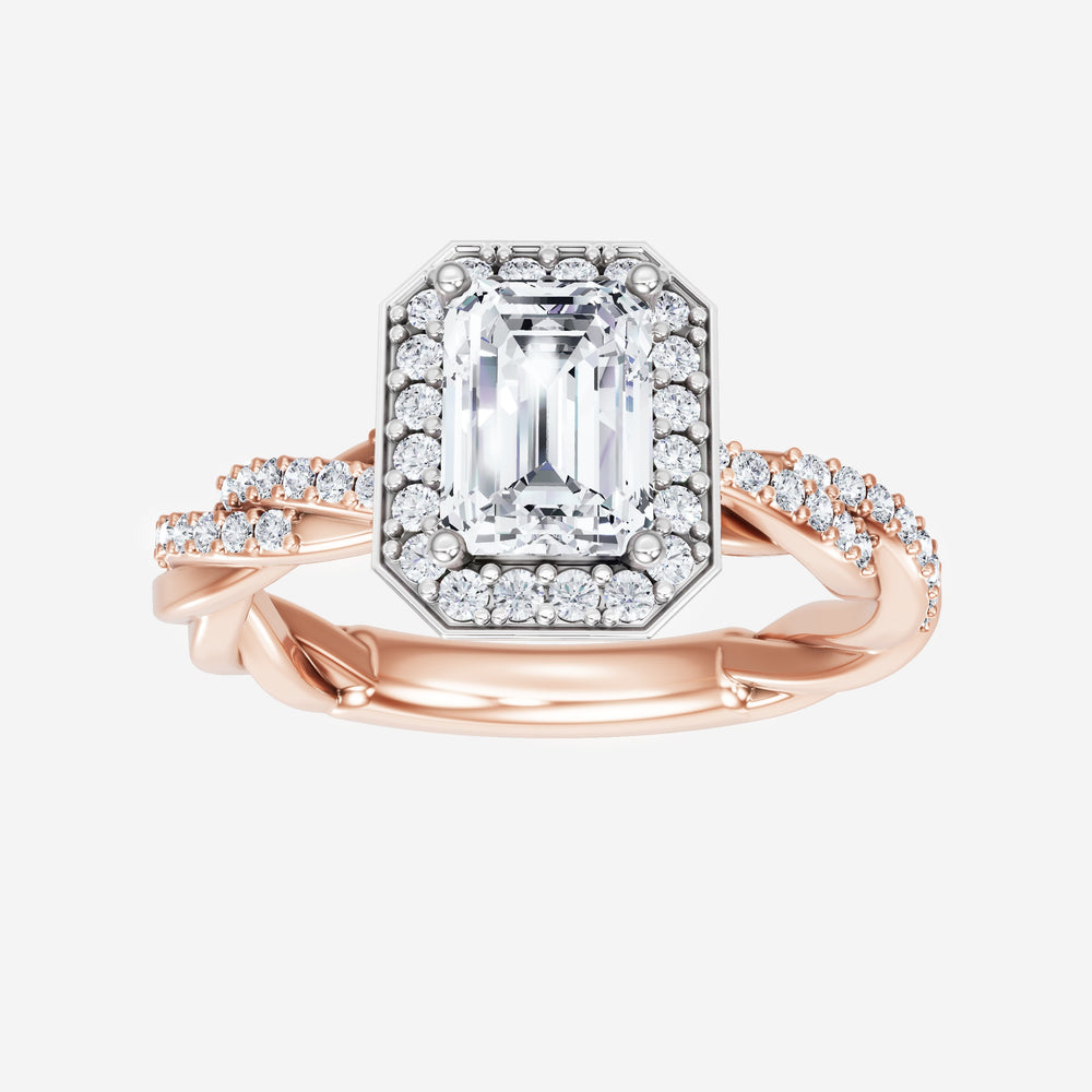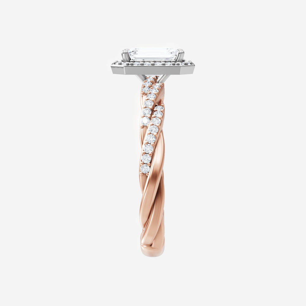 You’ve designed a ring that reflects lasting elegance and grace! Crafted from 14k Rose White Dual Tone, this exquisite Emerald lab-grown diamond is the centerpiece of this unique design. This Rope Diamond Shank with a Pave Halo head showcases the brilliance of the Emerald diamond, creating a timeless look. This ring will become a cherished reminder of life's most treasured moments.