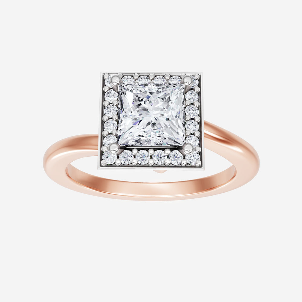 You’ve designed a ring that reflects lasting elegance and grace! Crafted from 14k Rose White Dual Tone, this exquisite Princess lab-grown diamond is the centerpiece of this unique design. This Bypass Shank with a Pave Halo head showcases the brilliance of the Princess diamond, creating a timeless look. Whether as a gift or a personal treasure, this ring will forever symbolize the most meaningful moments in life.