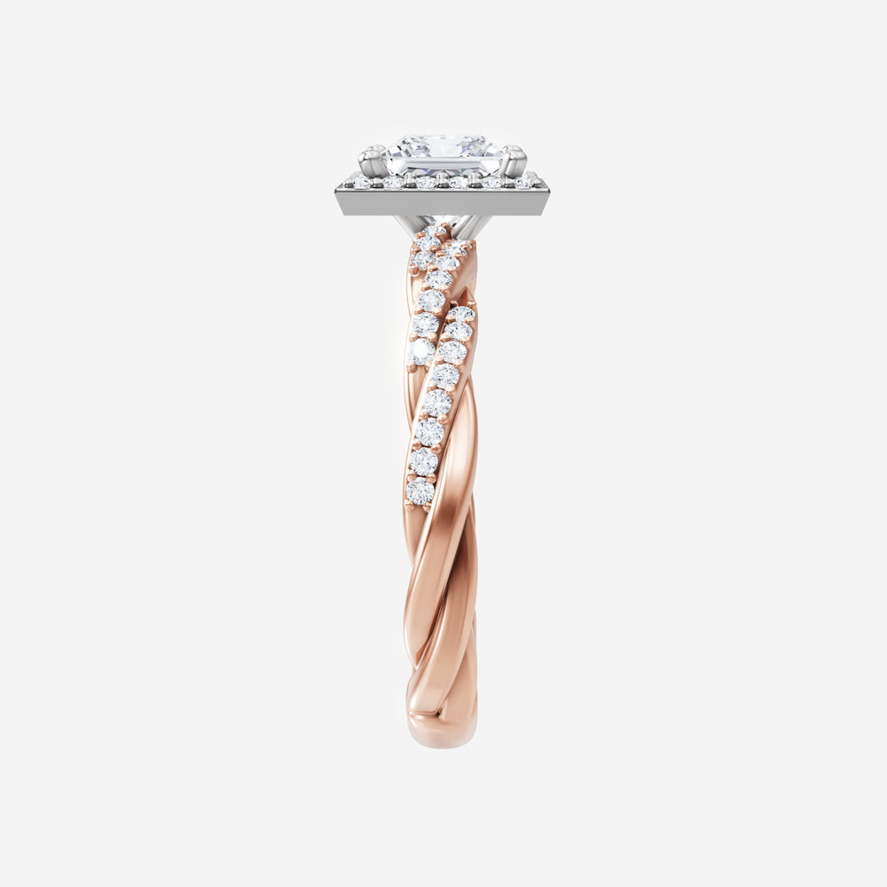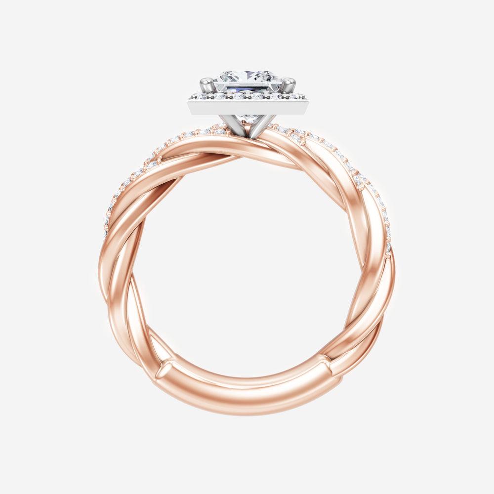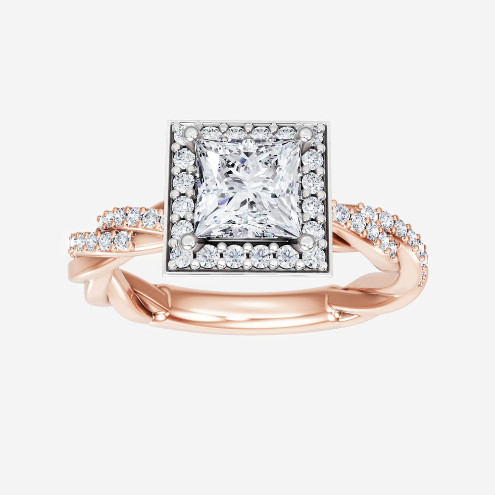 You’ve designed a ring that reflects lasting elegance and grace! Crafted from 14k Rose White Dual Tone, this exquisite Princess lab-grown diamond is the centerpiece of this unique design. This Rope Diamond Shank with a Pave Halo head showcases the brilliance of the Princess diamond, creating a timeless look. With this ring, celebrate every moment of joy, success, and love.