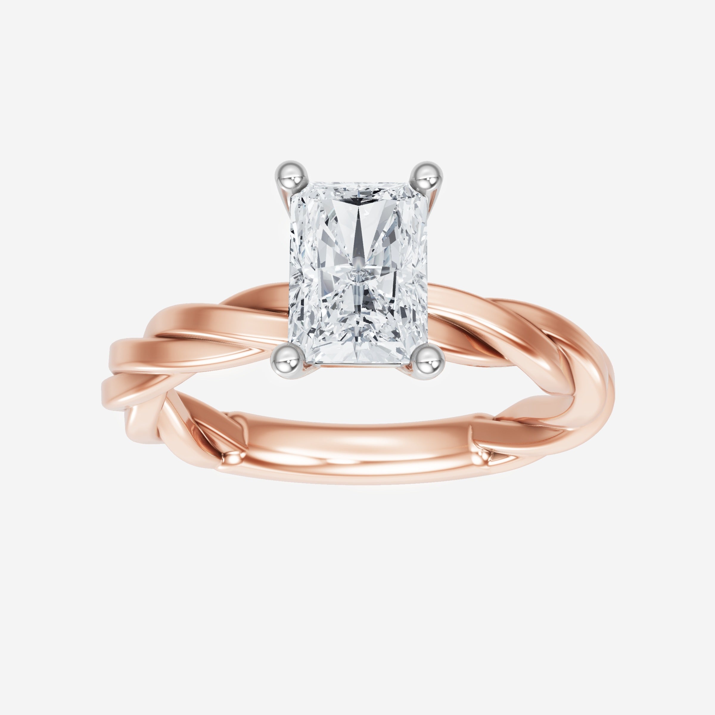 You’ve designed a ring that reflects lasting elegance and grace! Crafted from 14k Rose White Dual Tone, this exquisite Radiant lab-grown diamond is the centerpiece of this unique design. This Rope Plain Shank with a 4 Prong Head head showcases the brilliance of the Radiant diamond, creating a timeless look. This ring will become a cherished reminder of life's most treasured moments.