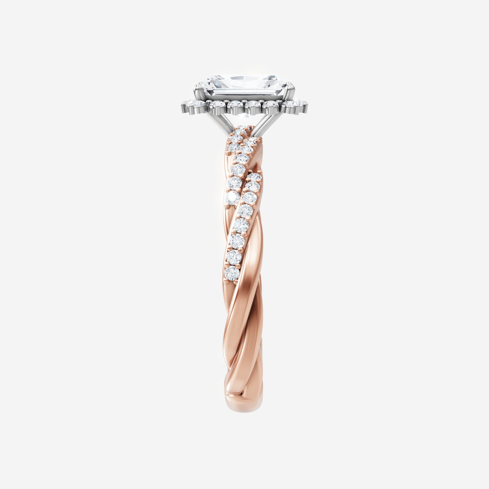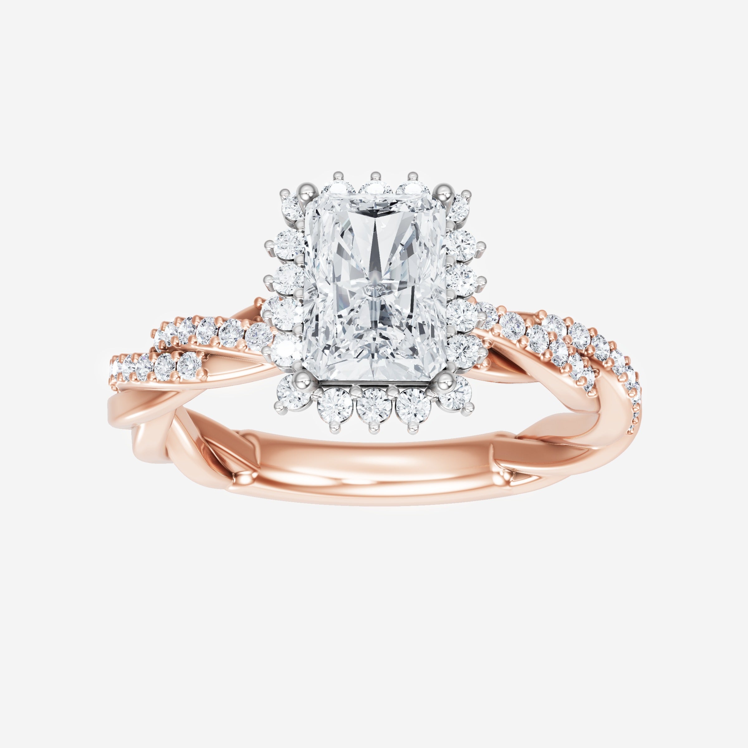 You’ve designed a ring that reflects lasting elegance and grace! Crafted from 14k Rose White Dual Tone, this exquisite Radiant lab-grown diamond is the centerpiece of this unique design. This Rope Diamond Shank with a Diana Halo head showcases the brilliance of the Radiant diamond, creating a timeless look. It's a piece of elegance and beauty, perfect for marking life's most beautiful occasions.