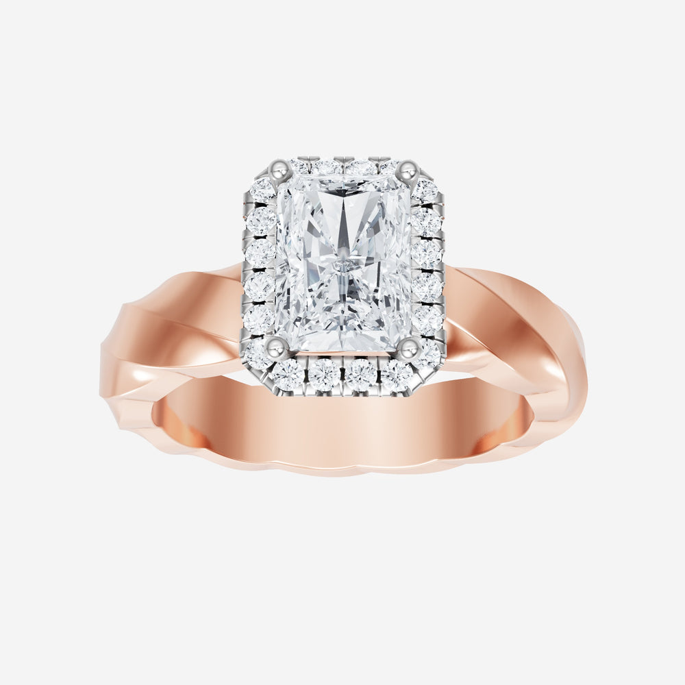 You’ve designed a ring that reflects lasting elegance and grace! Crafted from 14k Rose White Dual Tone, this exquisite Radiant lab-grown diamond is the centerpiece of this unique design. This Twisted Shank with a Micro Halo head showcases the brilliance of the Radiant diamond, creating a timeless look. A perfect choice to celebrate love, commitment, and everything in between.