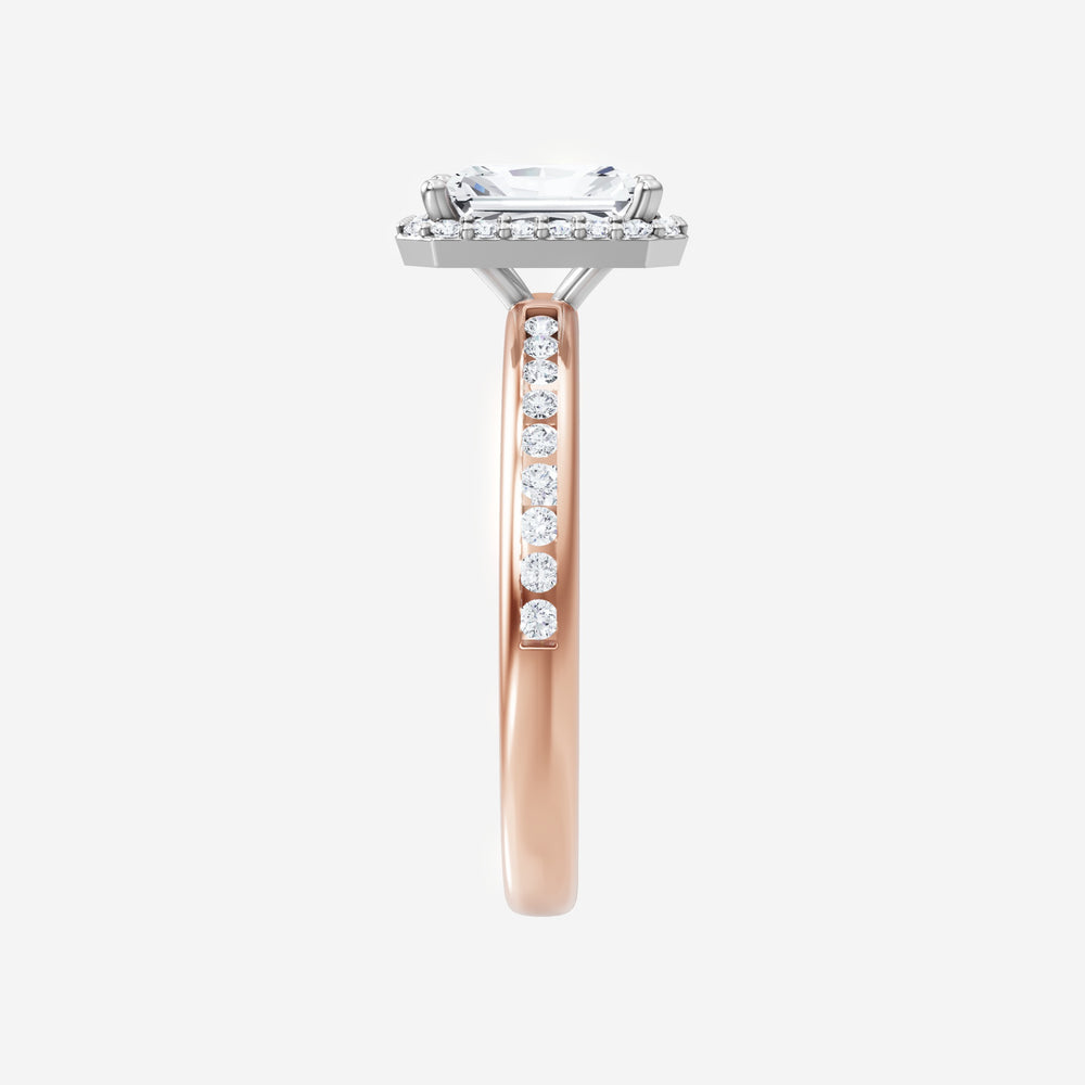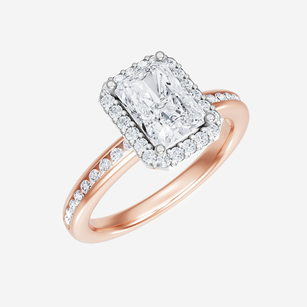 You’ve designed a ring that reflects lasting elegance and grace! Crafted from 14k Rose White Dual Tone, this exquisite Radiant lab-grown diamond is the centerpiece of this unique design. This Channel Set Shank with a Single Halo head showcases the brilliance of the Radiant diamond, creating a timeless look. This ring will become a cherished reminder of life's most treasured moments.