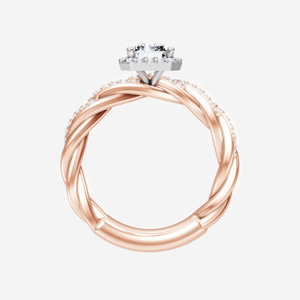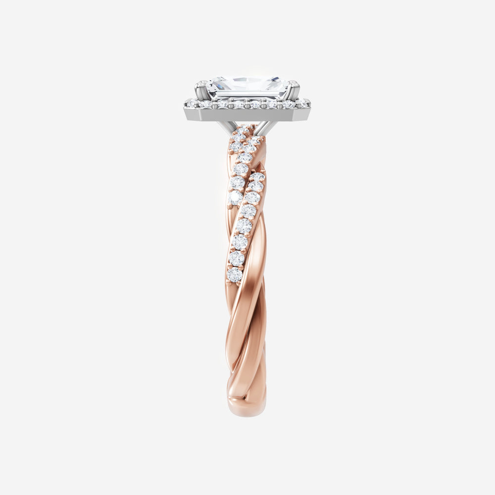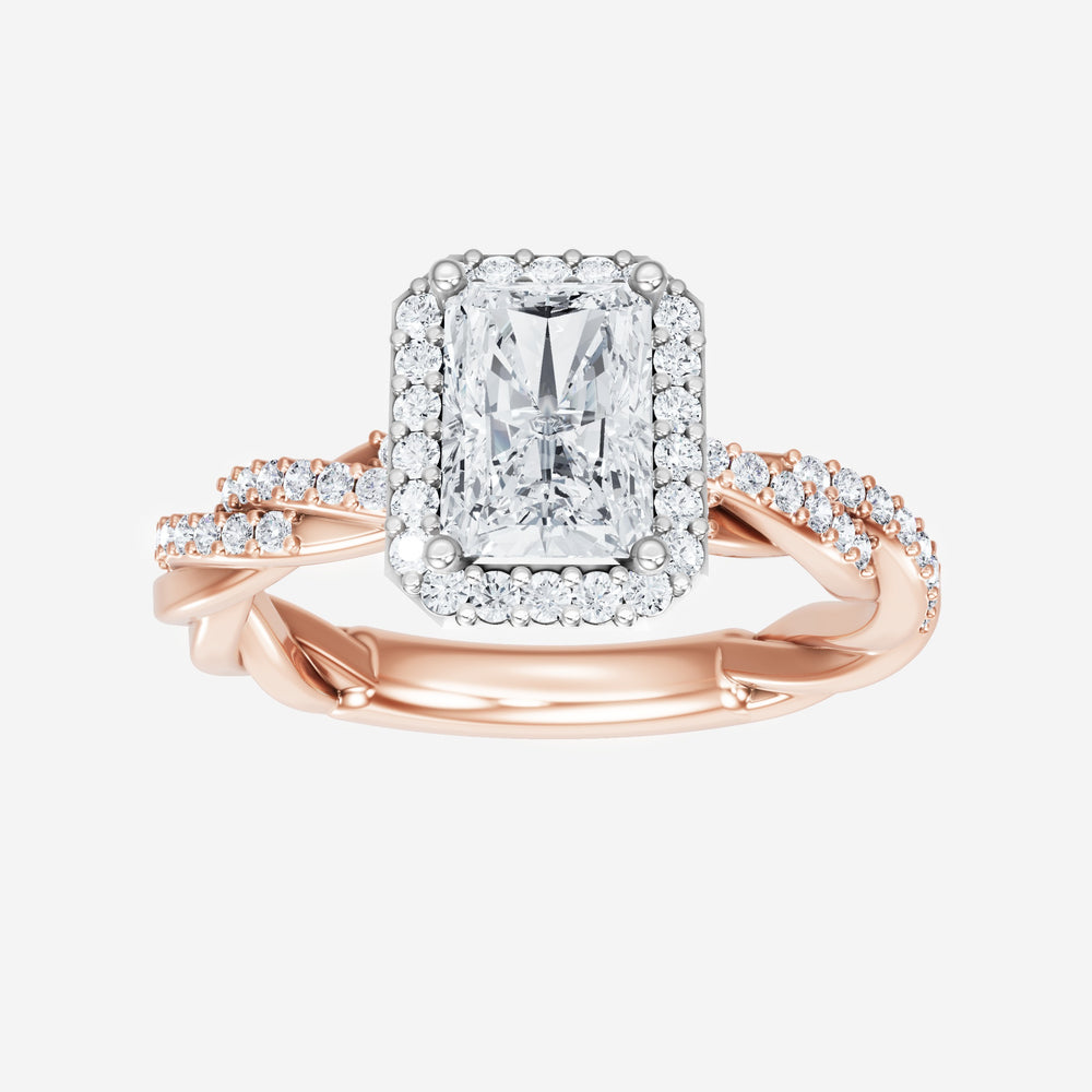 You’ve designed a ring that reflects lasting elegance and grace! Crafted from 14k Rose White Dual Tone, this exquisite Radiant lab-grown diamond is the centerpiece of this unique design. This Rope Diamond Shank with a Single Halo head showcases the brilliance of the Radiant diamond, creating a timeless look. This elegant piece is the perfect symbol of love, strength, and timeless beauty.