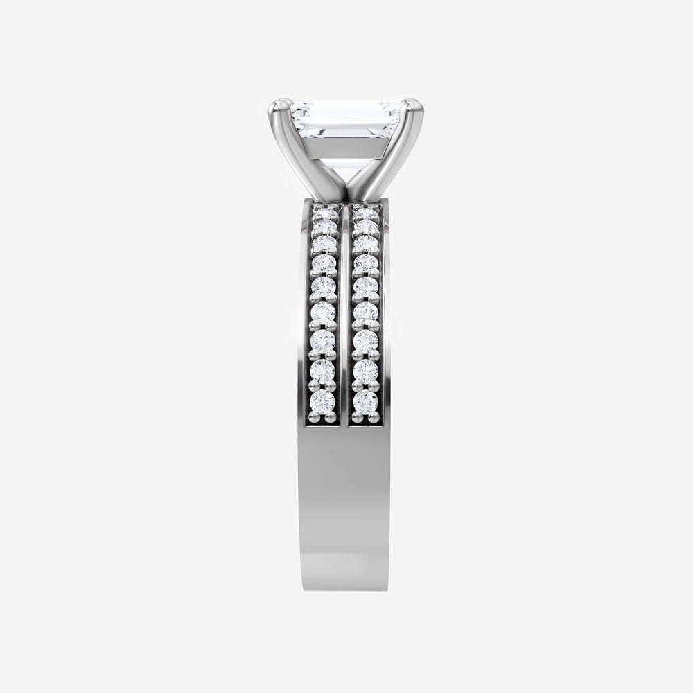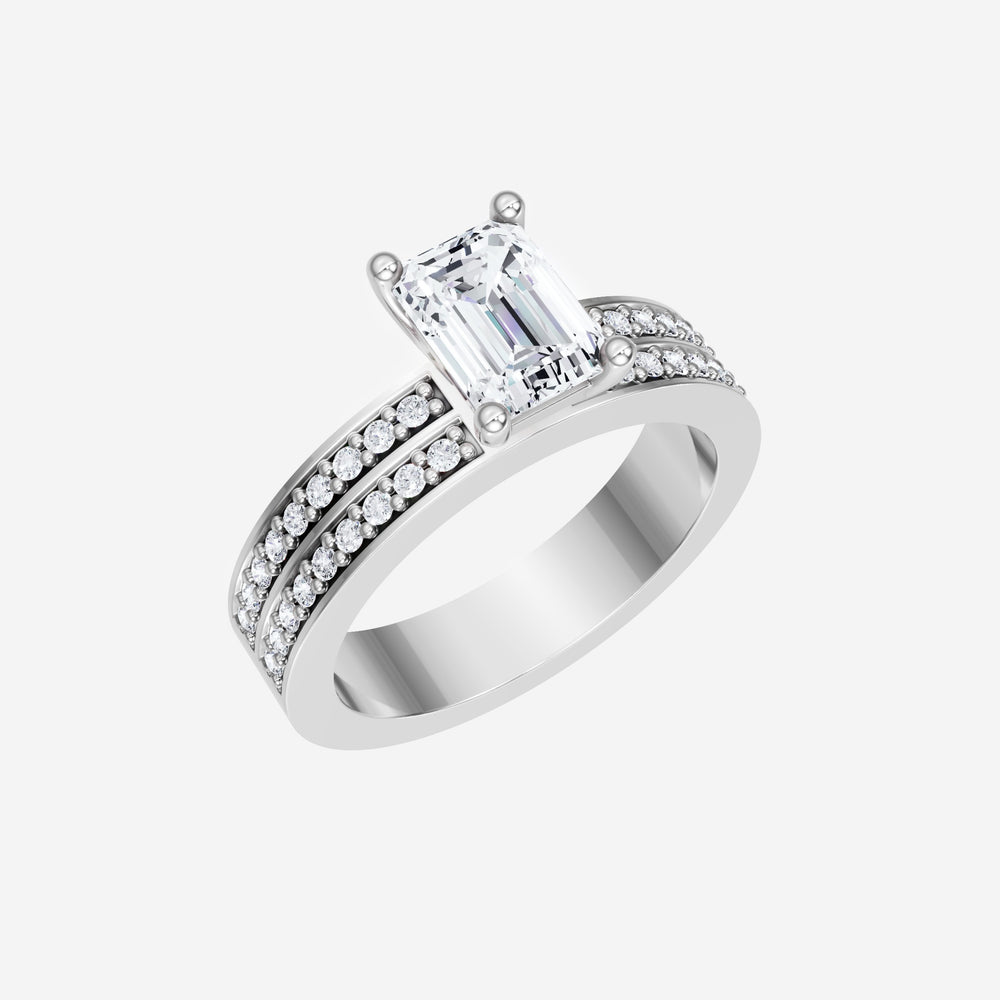 You’ve designed a ring that reflects lasting elegance and grace! Crafted from 14k White Gold, this exquisite Emerald lab-grown diamond is the centerpiece of this unique design. This Double Row Pave with a 4 Prong Head head showcases the brilliance of the Emerald diamond, creating a timeless look. Ideal for those who seek both beauty and meaning, this ring will stand as a testament to cherished memories.