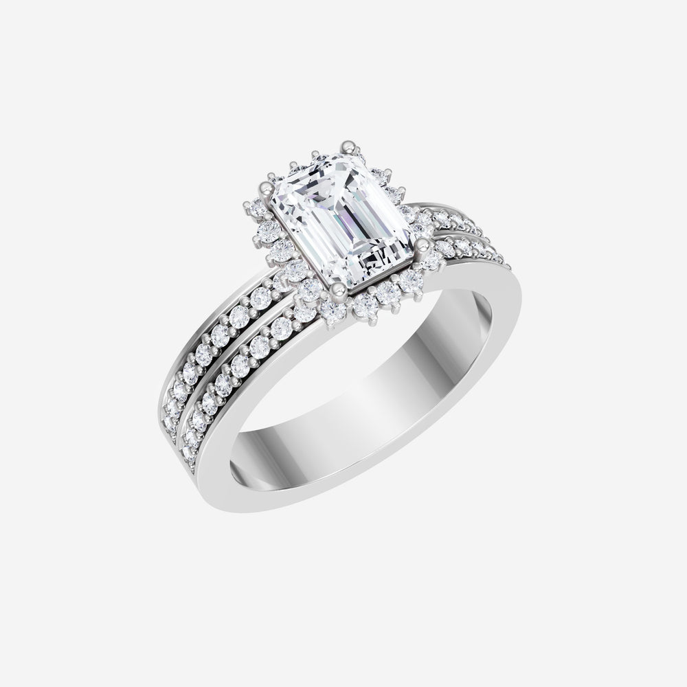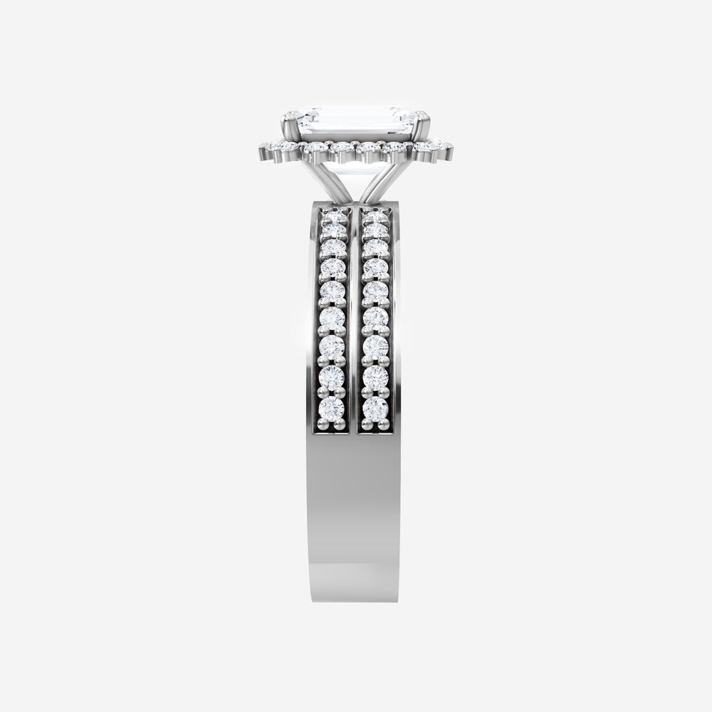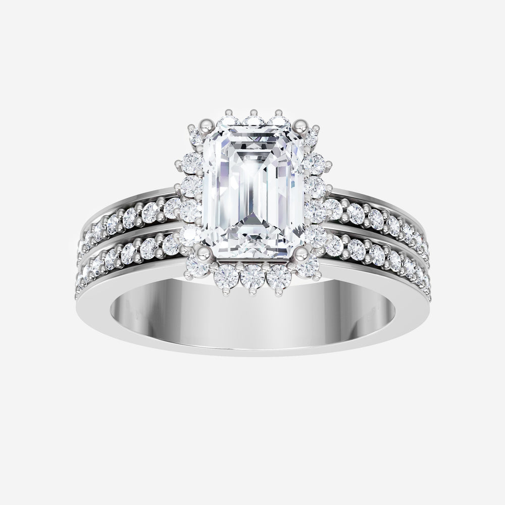 You’ve designed a ring that reflects lasting elegance and grace! Crafted from 14k White Gold, this exquisite Emerald lab-grown diamond is the centerpiece of this unique design. This Double Row Pave with a Diana Halo head showcases the brilliance of the Emerald diamond, creating a timeless look. Ideal for those who seek both beauty and meaning, this ring will stand as a testament to cherished memories.