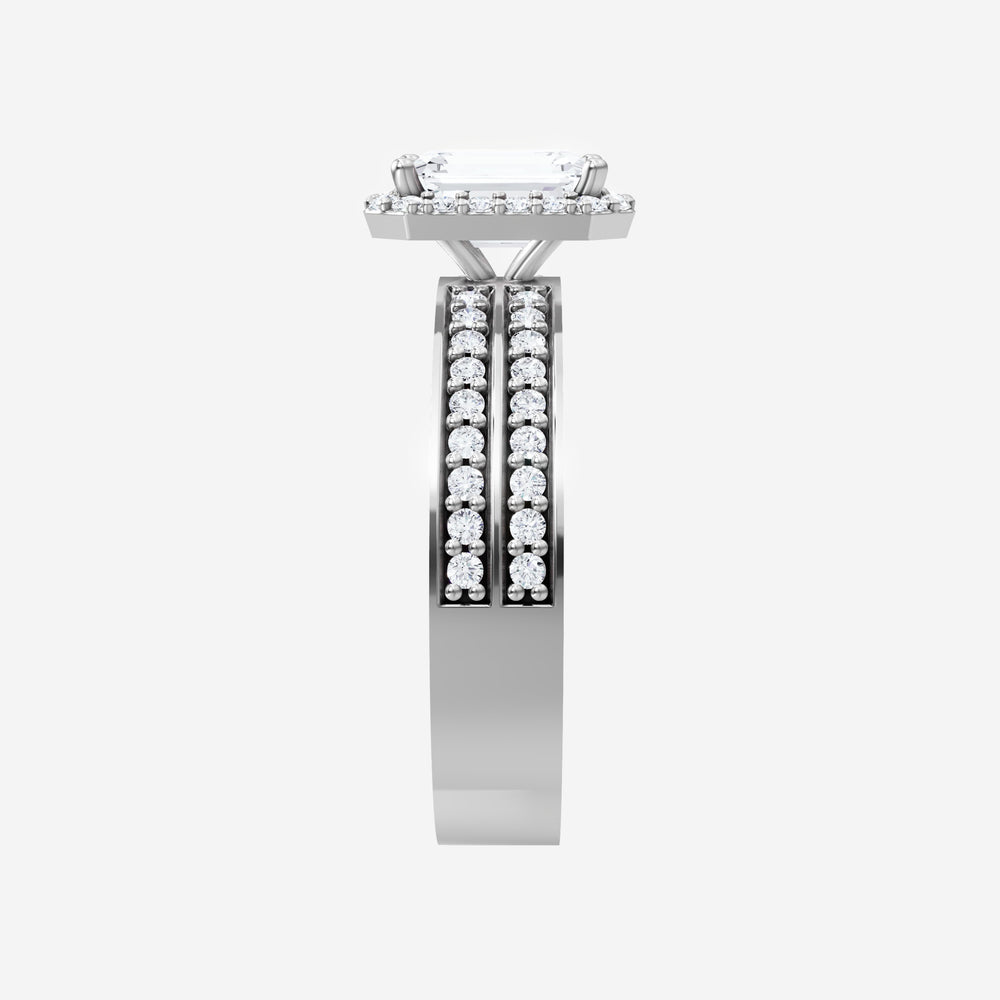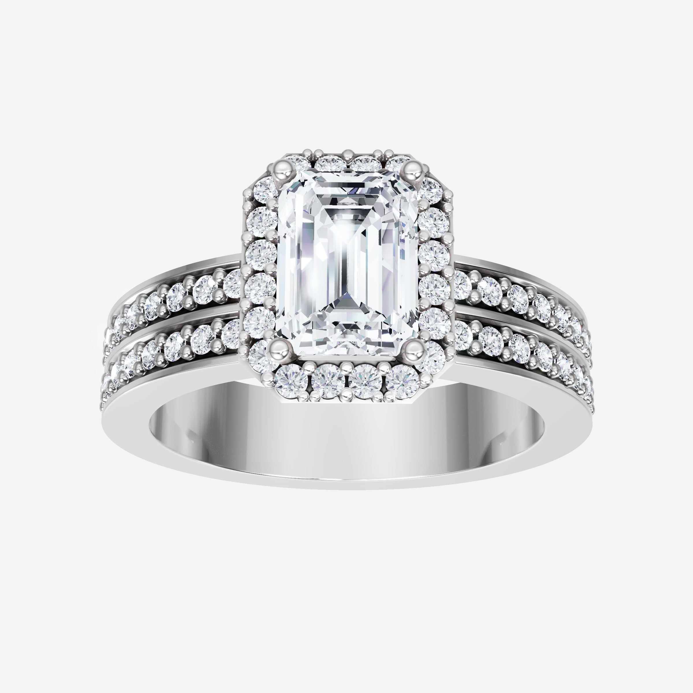 You’ve designed a ring that reflects lasting elegance and grace! Crafted from 14k White Gold, this exquisite Emerald lab-grown diamond is the centerpiece of this unique design. This Double Row Pave with a Single Halo head showcases the brilliance of the Emerald diamond, creating a timeless look. Ideal for those who seek both beauty and meaning, this ring will stand as a testament to cherished memories.
