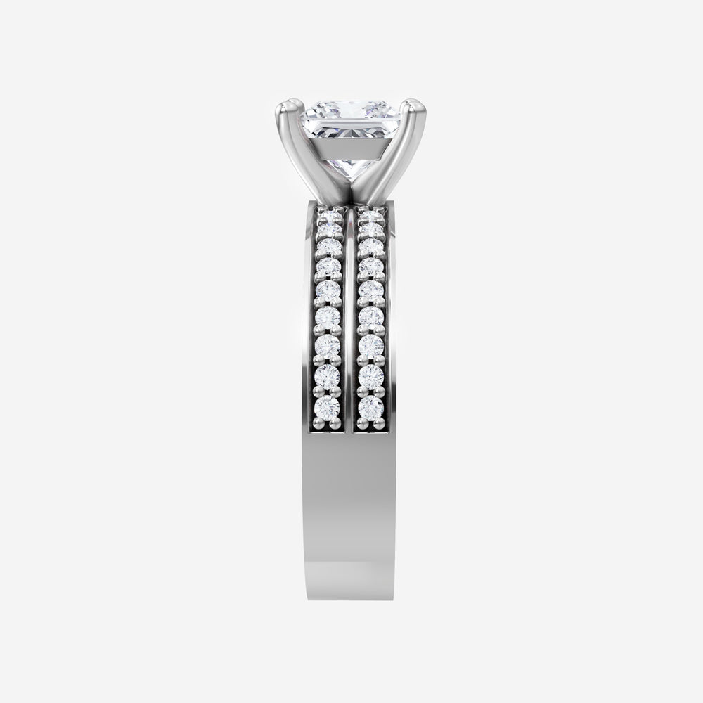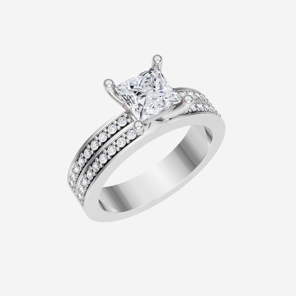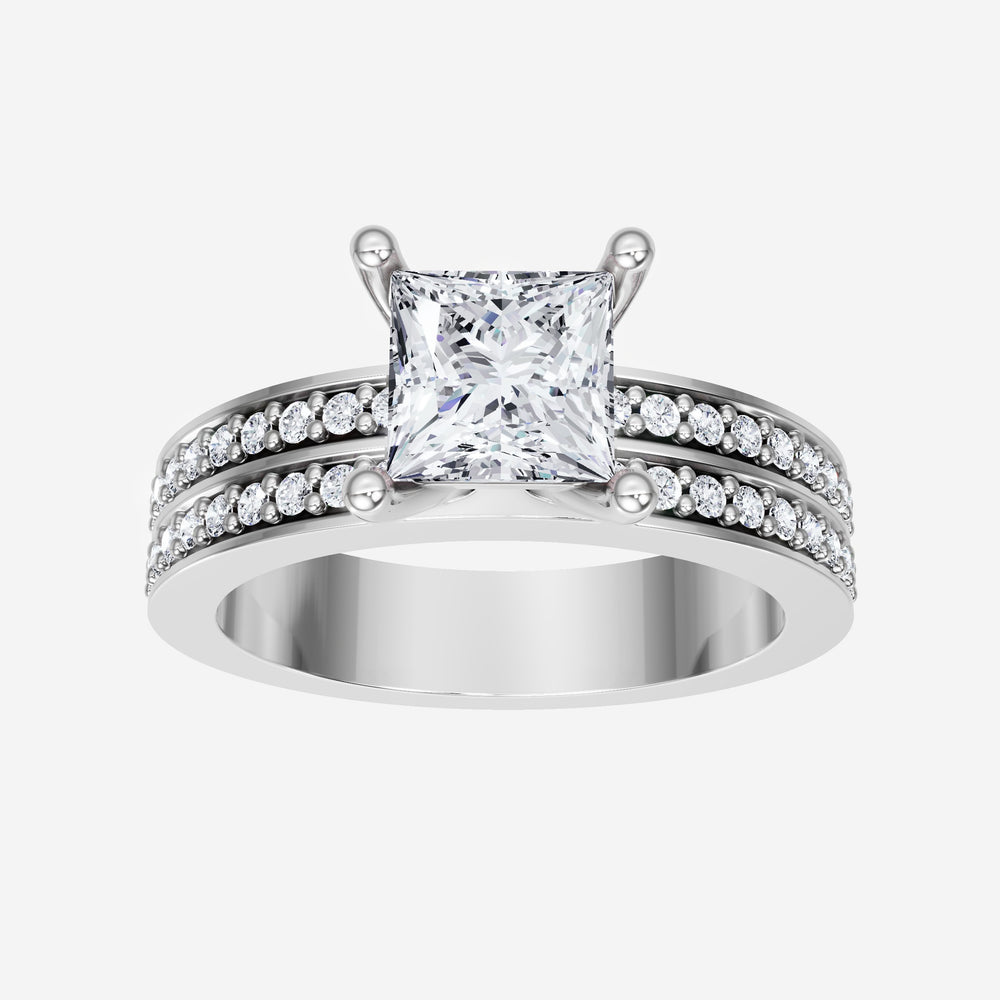 You’ve designed a ring that reflects lasting elegance and grace! Crafted from 14k White Gold, this exquisite Princess lab-grown diamond is the centerpiece of this unique design. This Double Row Pave with a 4 Prong Head head showcases the brilliance of the Princess diamond, creating a timeless look. It's a piece of elegance and beauty, perfect for marking life's most beautiful occasions.