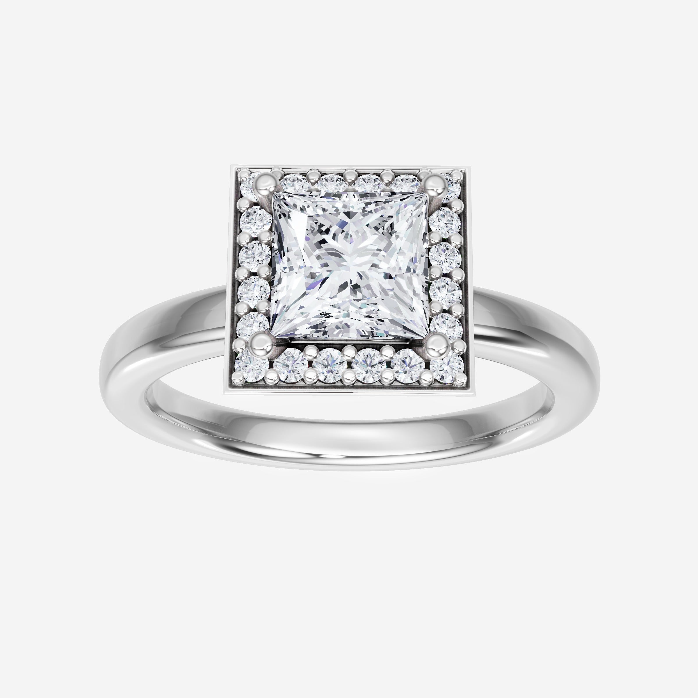 You’ve designed a ring that reflects lasting elegance and grace! Crafted from 14k White Gold, this exquisite Princess lab-grown diamond is the centerpiece of this unique design. This Basic Plain Shank with a Pave Halo head showcases the brilliance of the Princess diamond, creating a timeless look. It's a piece of elegance and beauty, perfect for marking life's most beautiful occasions.