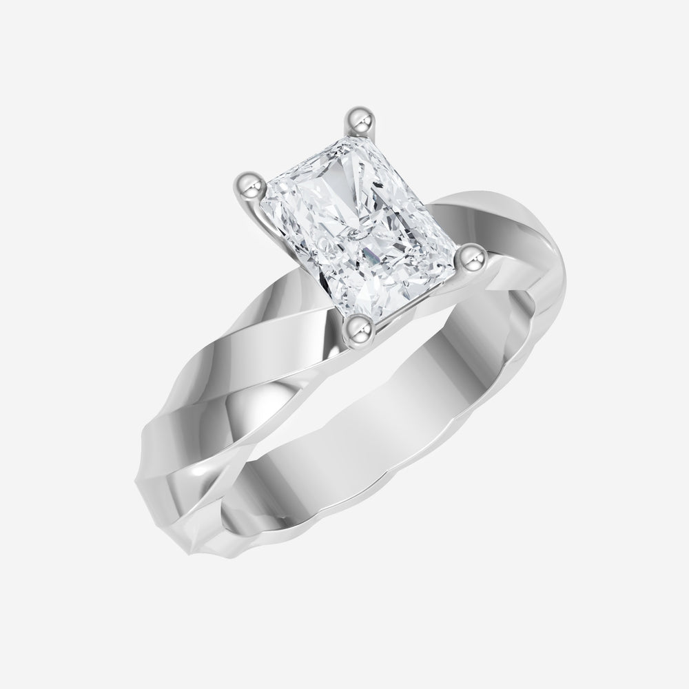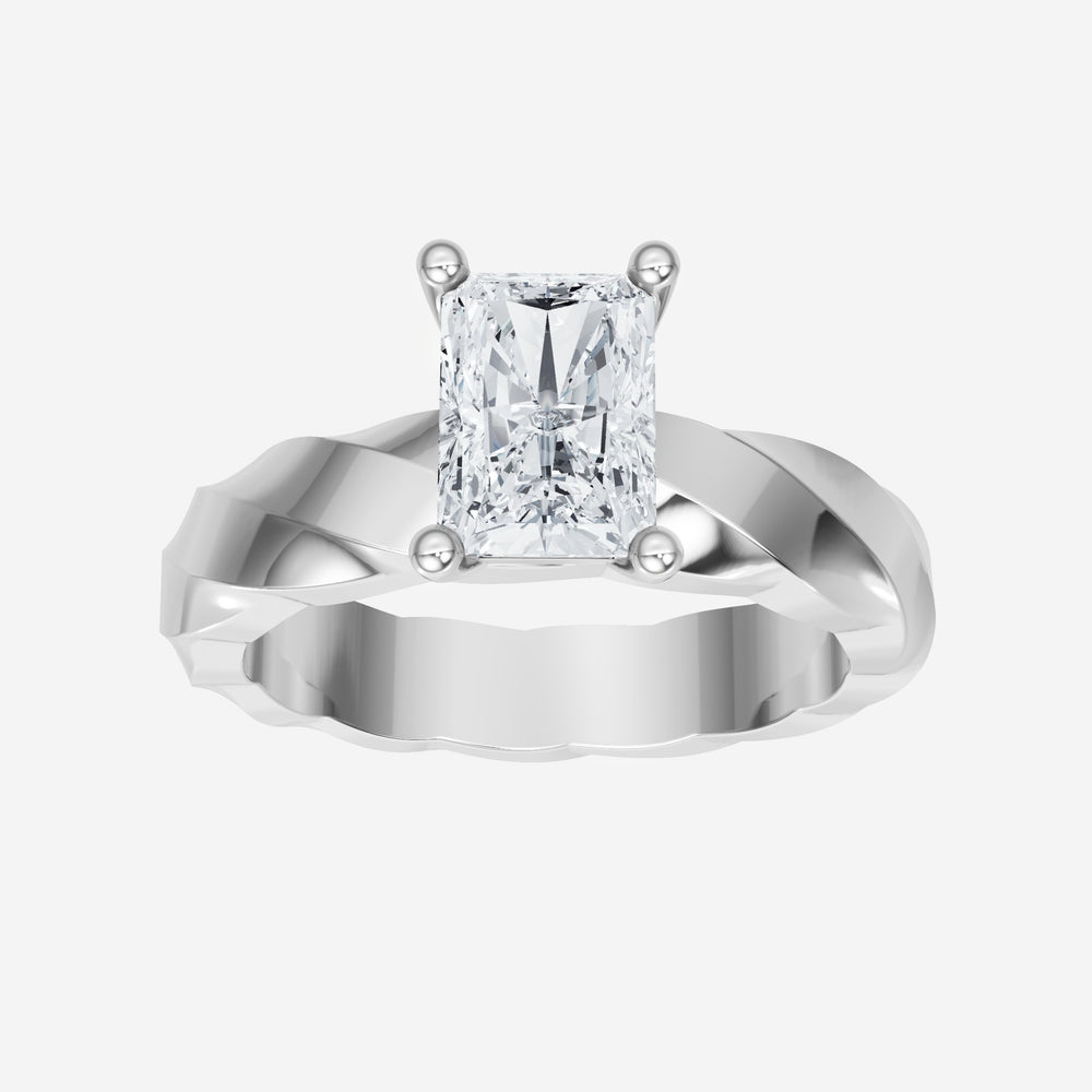 You’ve designed a ring that reflects lasting elegance and grace! Crafted from 14k White Gold, this exquisite Radiant lab-grown diamond is the centerpiece of this unique design. This Twisted Shank with a 4 Prong Head head showcases the brilliance of the Radiant diamond, creating a timeless look. This ring will become a cherished reminder of life's most treasured moments.
