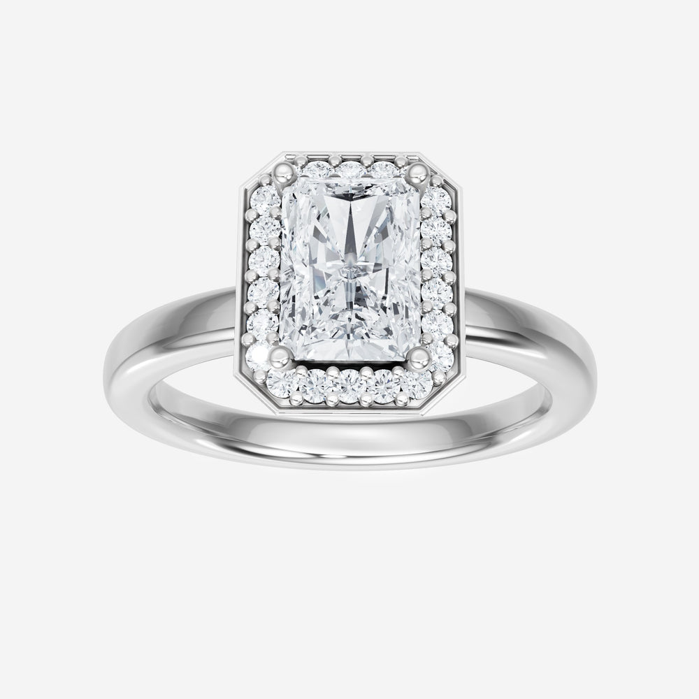 You’ve designed a ring that reflects lasting elegance and grace! Crafted from 14k White Gold, this exquisite Radiant lab-grown diamond is the centerpiece of this unique design. This Basic Plain Shank with a Pave Halo head showcases the brilliance of the Radiant diamond, creating a timeless look. This elegant piece is the perfect symbol of love, strength, and timeless beauty.