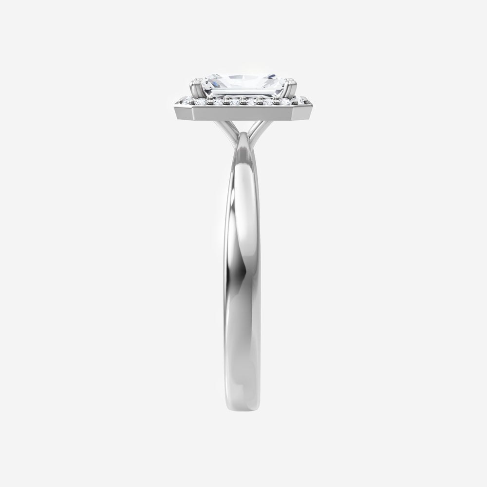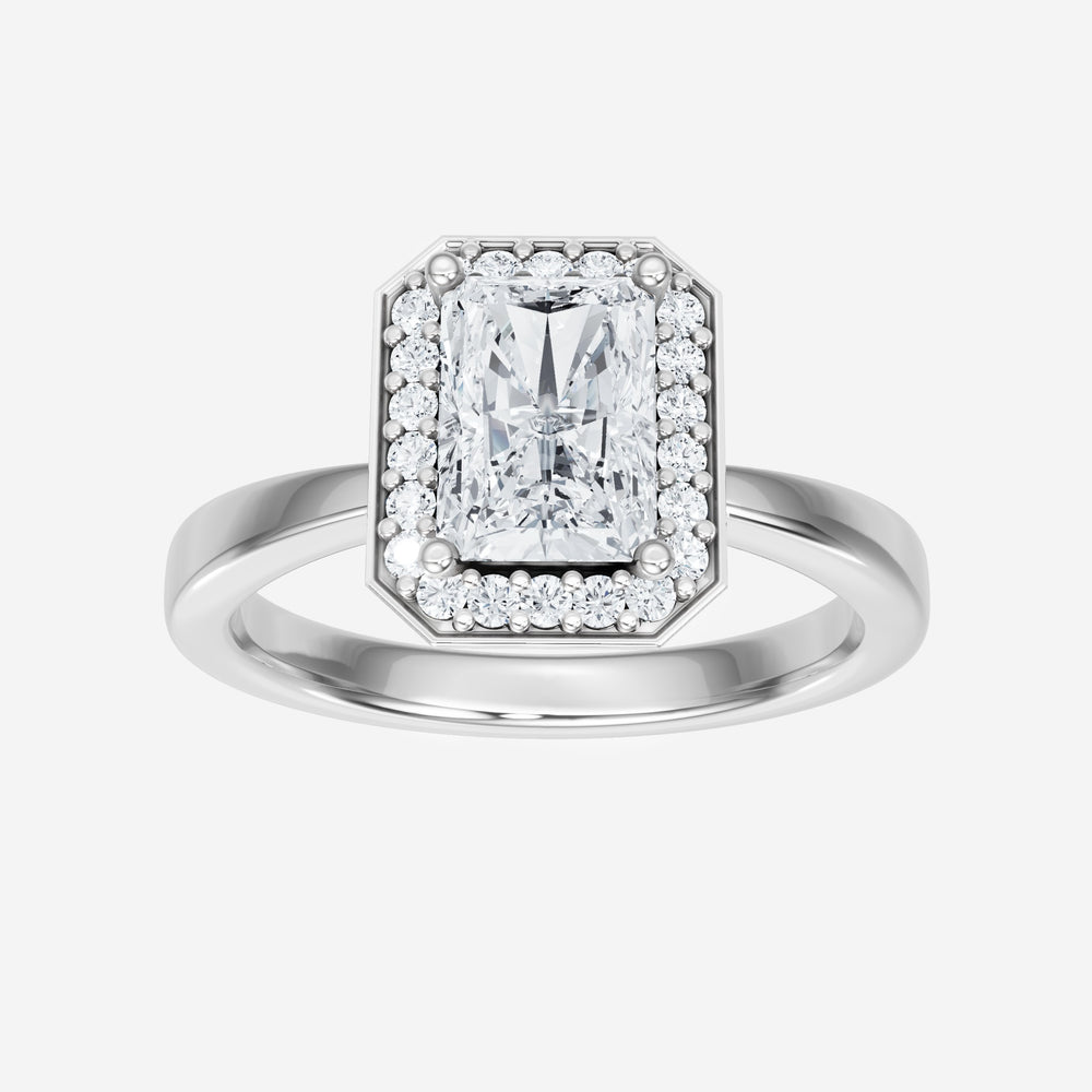 You’ve designed a ring that reflects lasting elegance and grace! Crafted from 14k White Gold, this exquisite Radiant lab-grown diamond is the centerpiece of this unique design. This Bow Shank (Reverse Tapered) with a Pave Halo head showcases the brilliance of the Radiant diamond, creating a timeless look. It's a piece of elegance and beauty, perfect for marking life's most beautiful occasions.