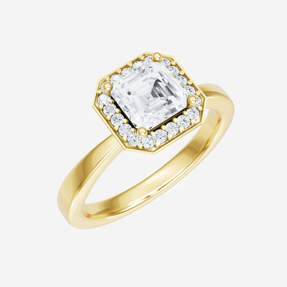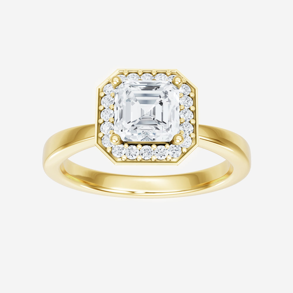 You’ve designed a ring that reflects lasting elegance and grace! Crafted from 14k Yellow Gold, this exquisite Asscher lab-grown diamond is the centerpiece of this unique design. This Bow Shank (Reverse Tapered) with a Pave Halo head showcases the brilliance of the Asscher diamond, creating a timeless look. Whether as a gift or a personal treasure, this ring will forever symbolize the most meaningful moments in life.