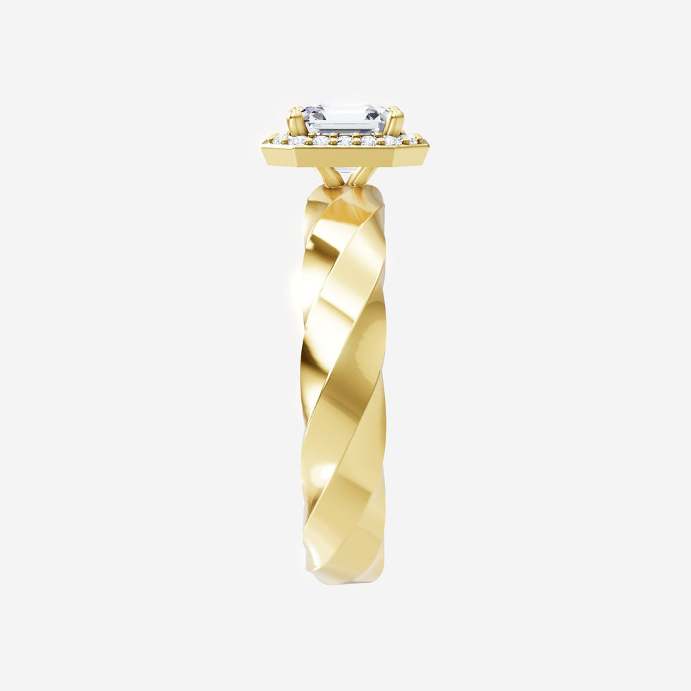 You’ve designed a ring that reflects lasting elegance and grace! Crafted from 14k Yellow Gold, this exquisite Asscher lab-grown diamond is the centerpiece of this unique design. This Twisted Shank with a Pave Halo head showcases the brilliance of the Asscher diamond, creating a timeless look. Whether as a gift or a personal treasure, this ring will forever symbolize the most meaningful moments in life.