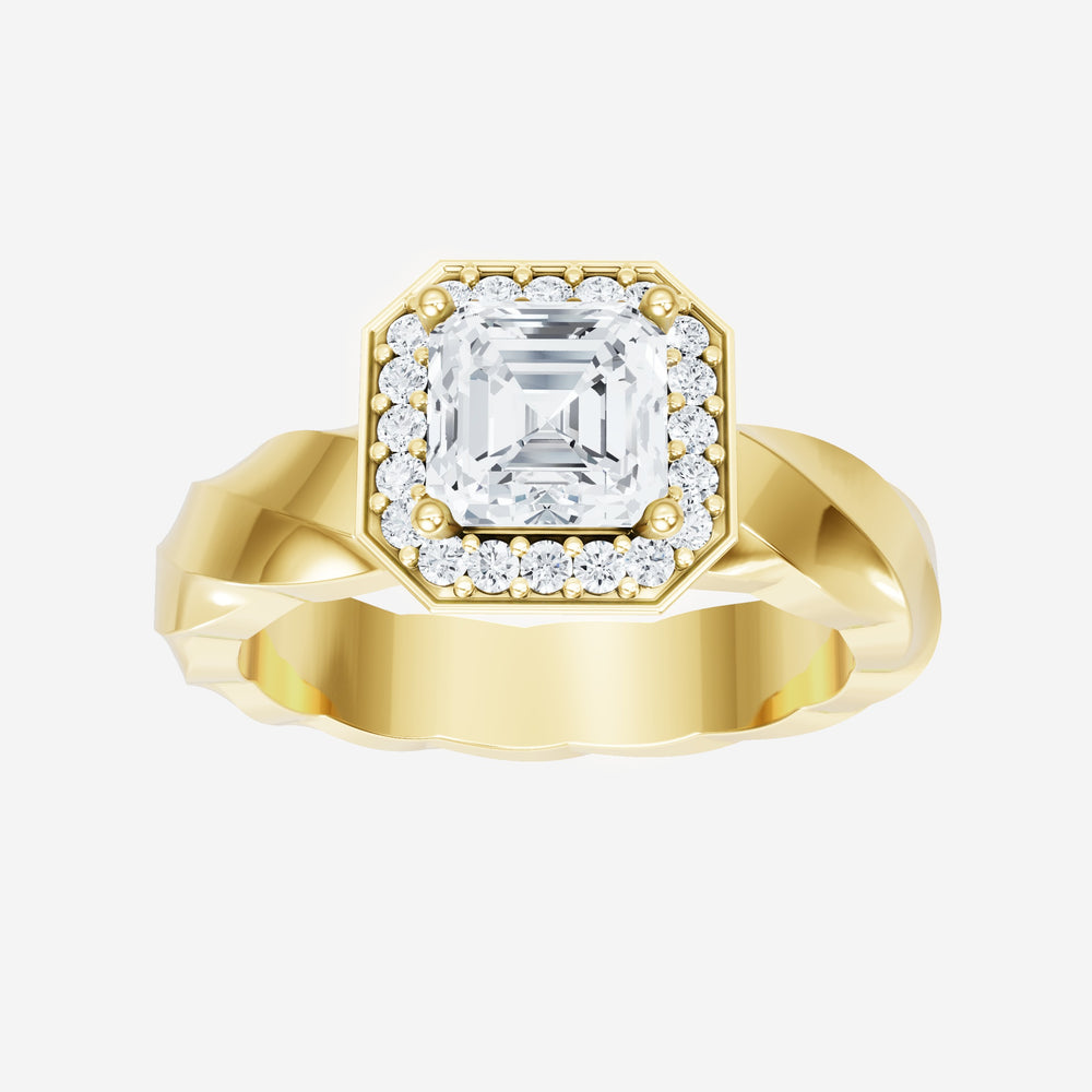 You’ve designed a ring that reflects lasting elegance and grace! Crafted from 14k Yellow Gold, this exquisite Asscher lab-grown diamond is the centerpiece of this unique design. This Twisted Shank with a Pave Halo head showcases the brilliance of the Asscher diamond, creating a timeless look. Whether as a gift or a personal treasure, this ring will forever symbolize the most meaningful moments in life.