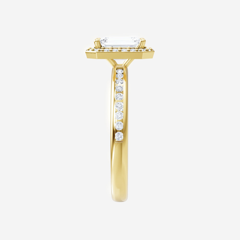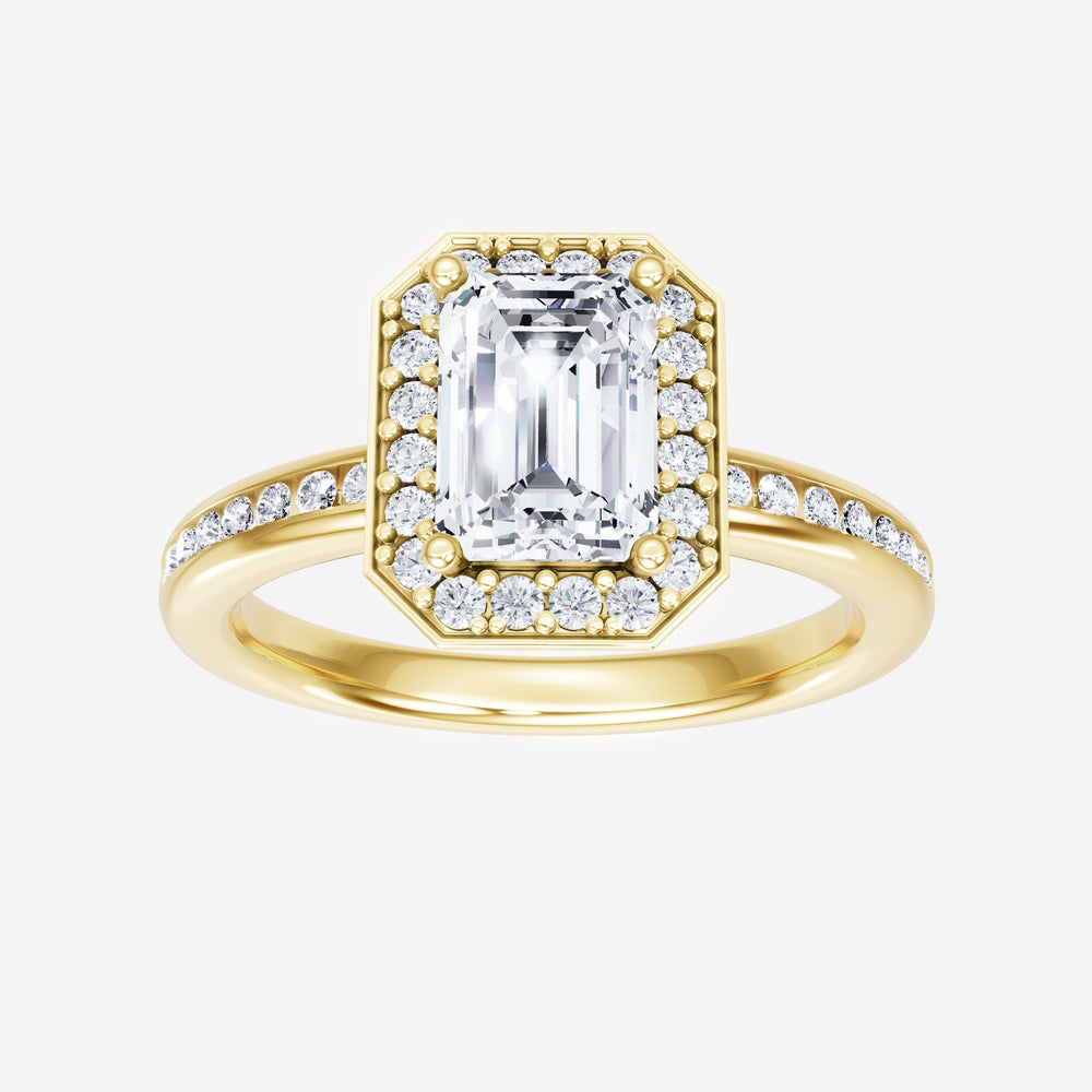 You’ve designed a ring that reflects lasting elegance and grace! Crafted from 14k Yellow Gold, this exquisite Emerald lab-grown diamond is the centerpiece of this unique design. This Channel Set Shank with a Pave Halo head showcases the brilliance of the Emerald diamond, creating a timeless look. Ideal for those who seek both beauty and meaning, this ring will stand as a testament to cherished memories.