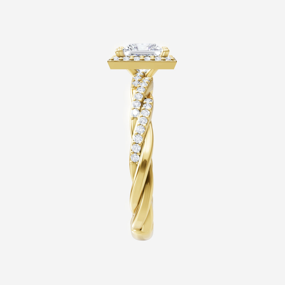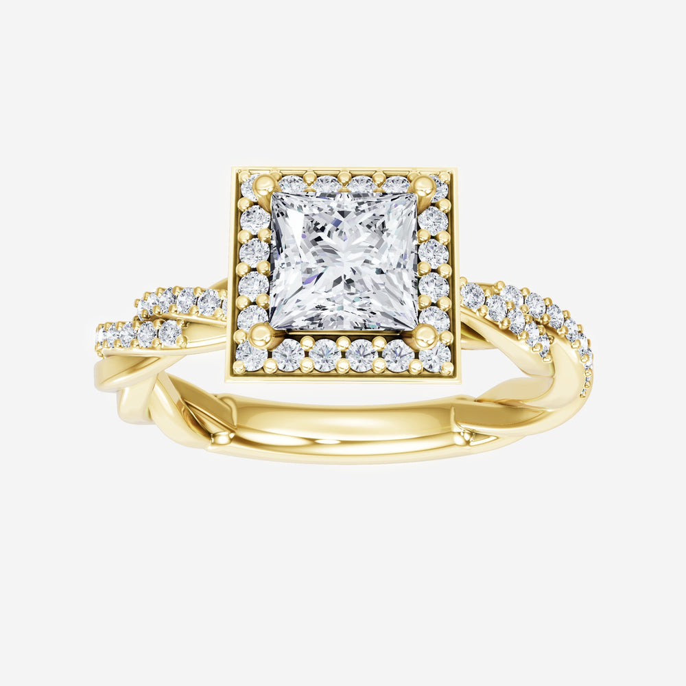 You’ve designed a ring that reflects lasting elegance and grace! Crafted from 14k Yellow Gold, this exquisite Princess lab-grown diamond is the centerpiece of this unique design. This Rope Diamond Shank with a Pave Halo head showcases the brilliance of the Princess diamond, creating a timeless look. It's a piece of elegance and beauty, perfect for marking life's most beautiful occasions.
