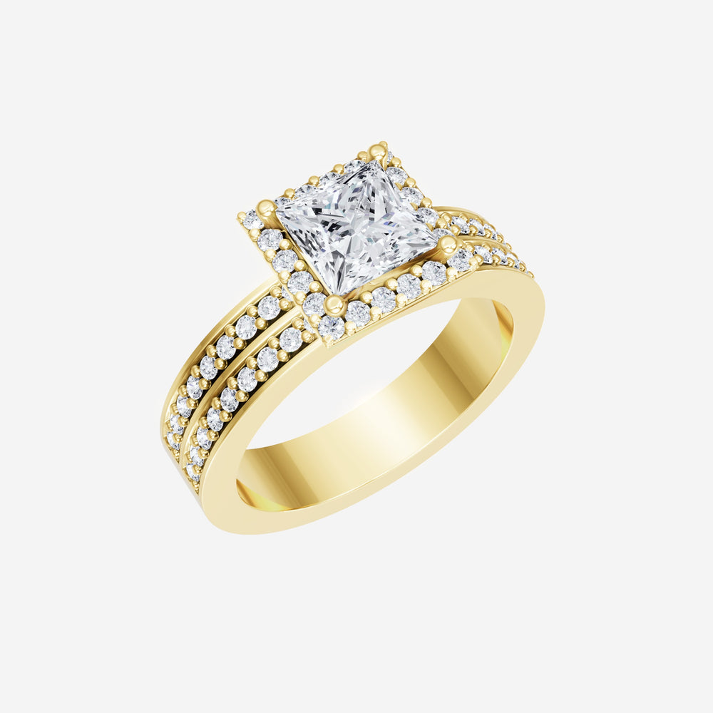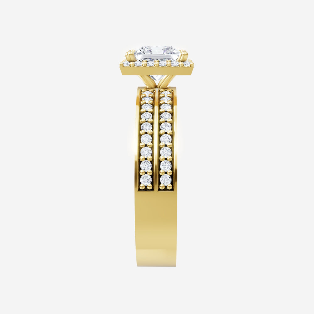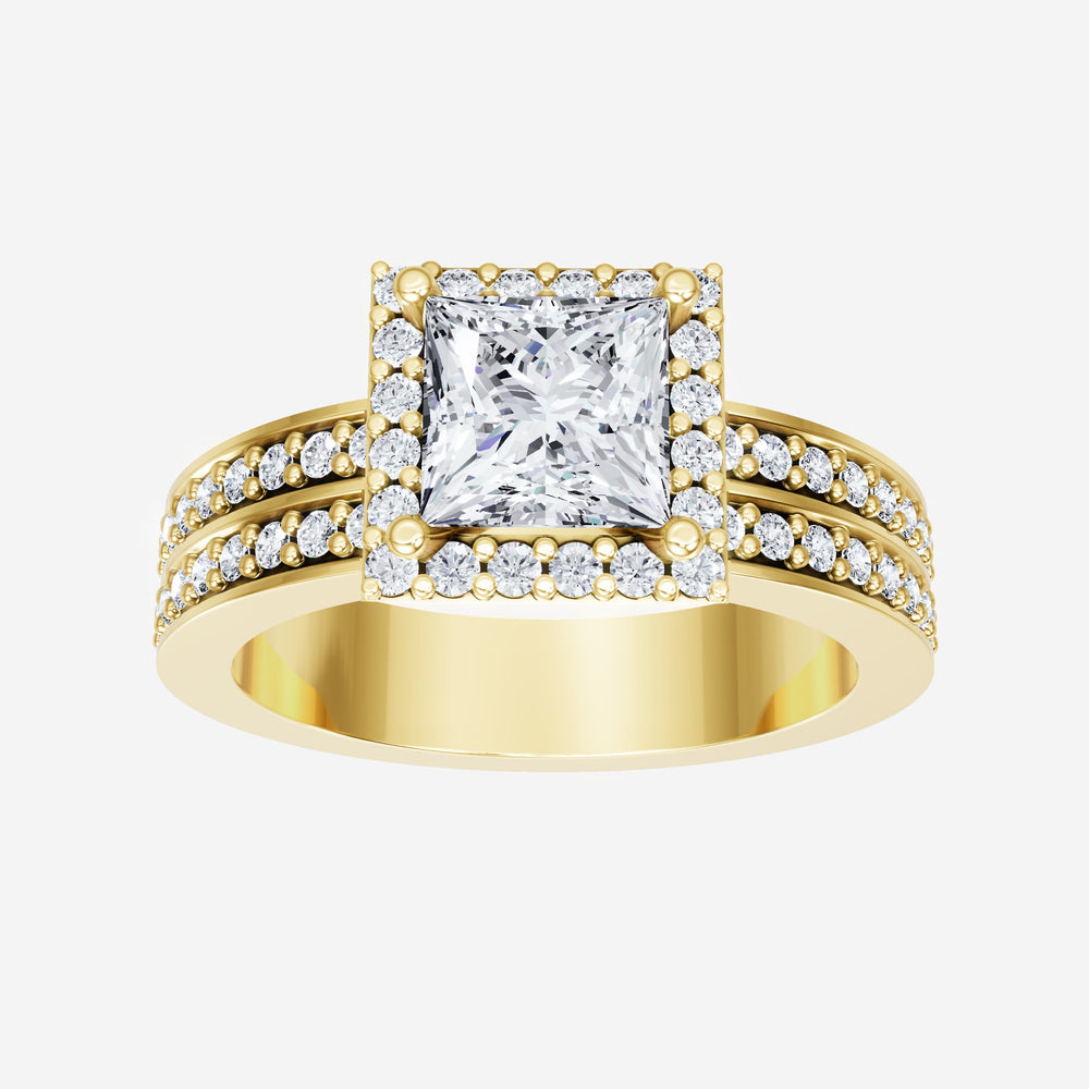 You’ve designed a ring that reflects lasting elegance and grace! Crafted from 14k Yellow Gold, this exquisite Princess lab-grown diamond is the centerpiece of this unique design. This Double Row Pave with a Single Halo head showcases the brilliance of the Princess diamond, creating a timeless look. Whether as a gift or a personal treasure, this ring will forever symbolize the most meaningful moments in life.