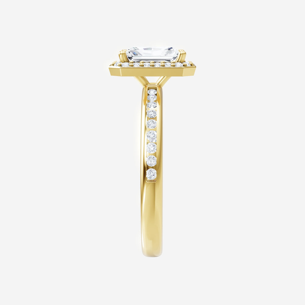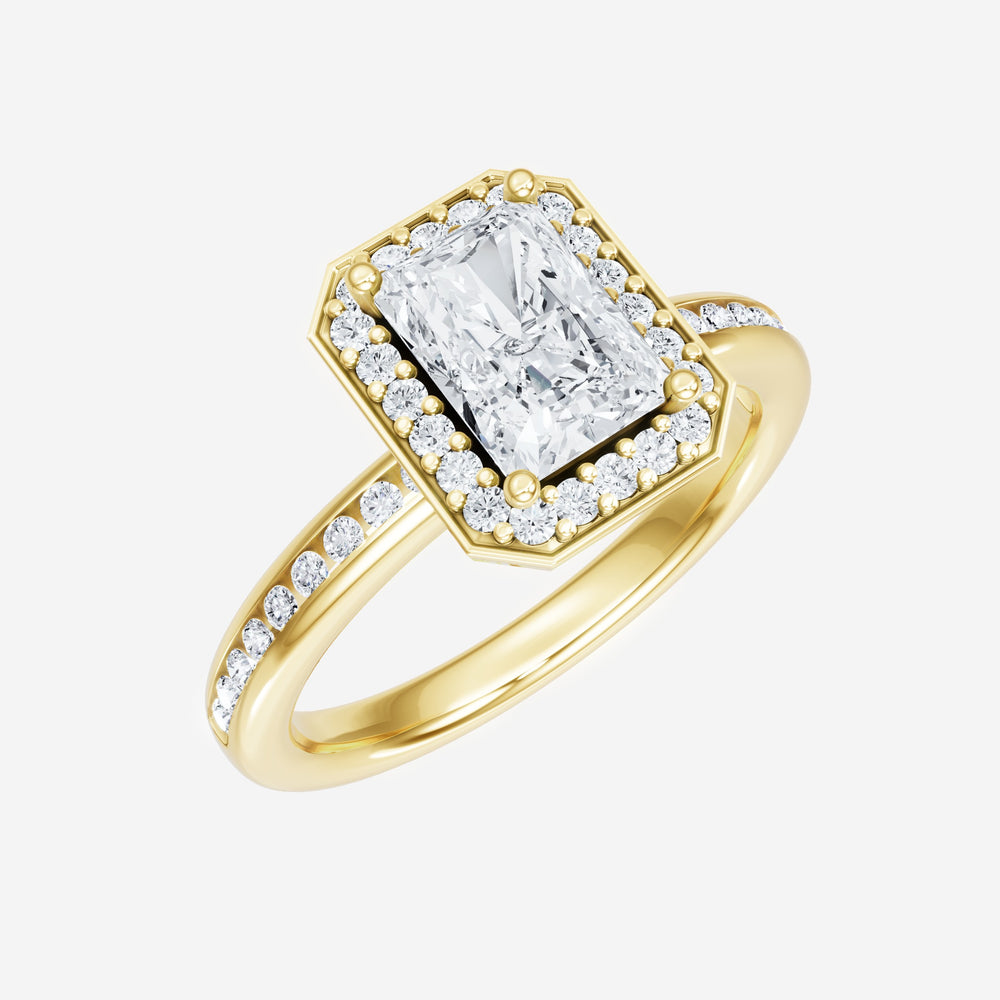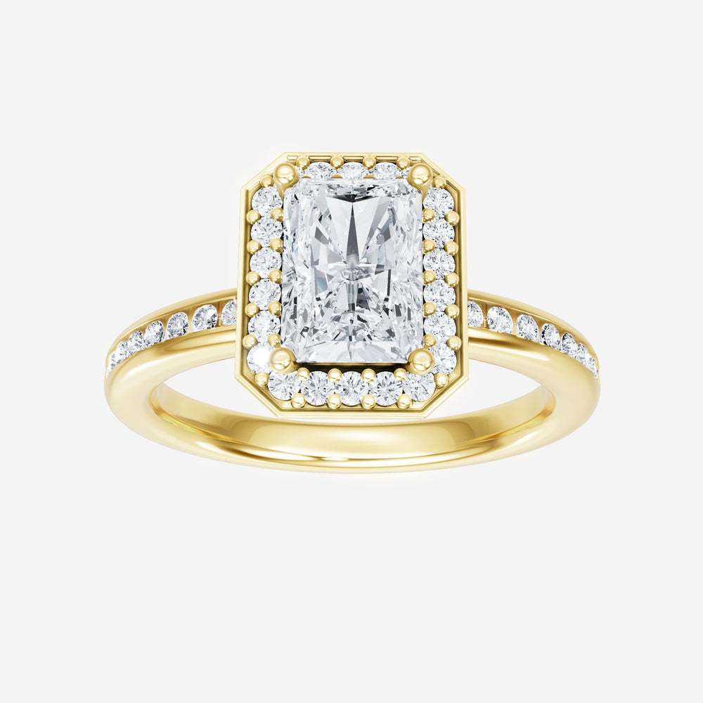 You’ve designed a ring that reflects lasting elegance and grace! Crafted from 14k Yellow Gold, this exquisite Radiant lab-grown diamond is the centerpiece of this unique design. This Channel Set Shank with a Pave Halo head showcases the brilliance of the Radiant diamond, creating a timeless look. This ring will become a cherished reminder of life's most treasured moments.